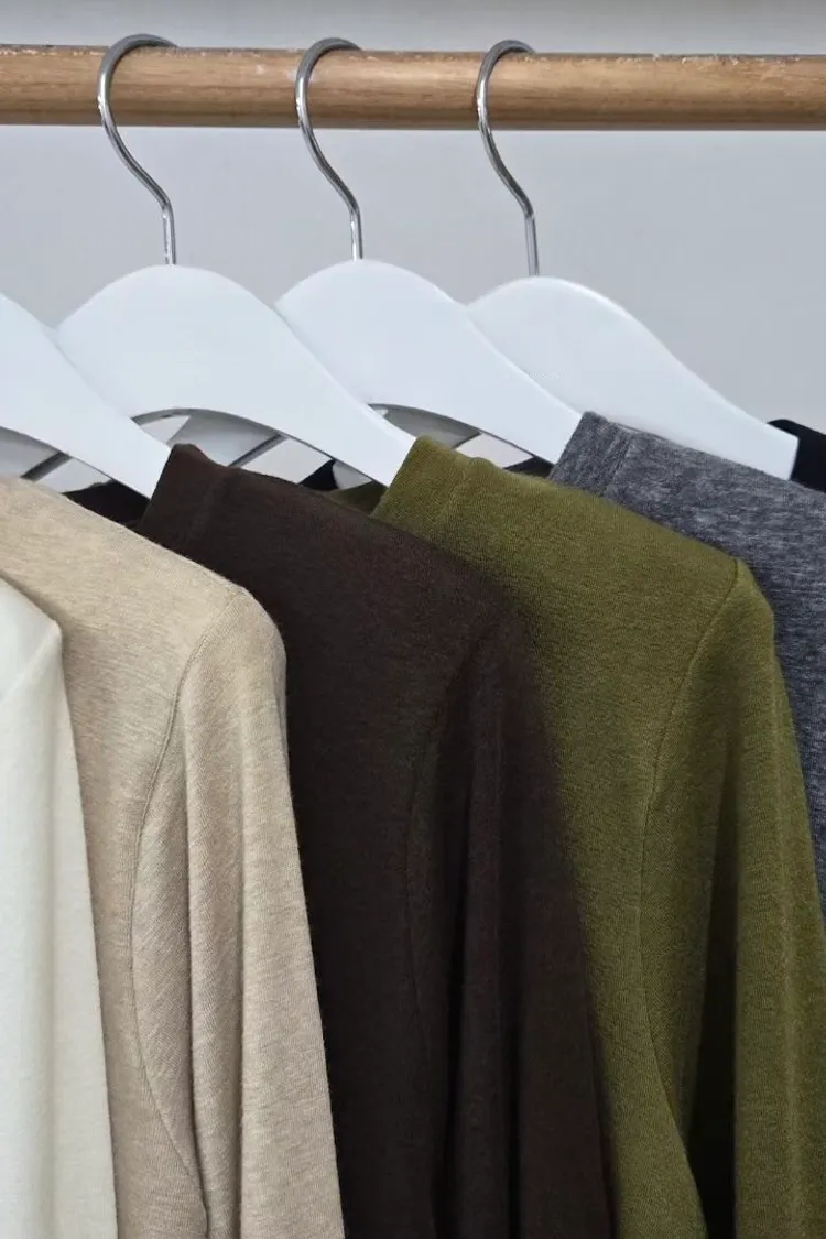 ※針織:冷水輕揉搓洗,為保證毛線色澤,可在水中滴入2%的醋,平鋪晾乾