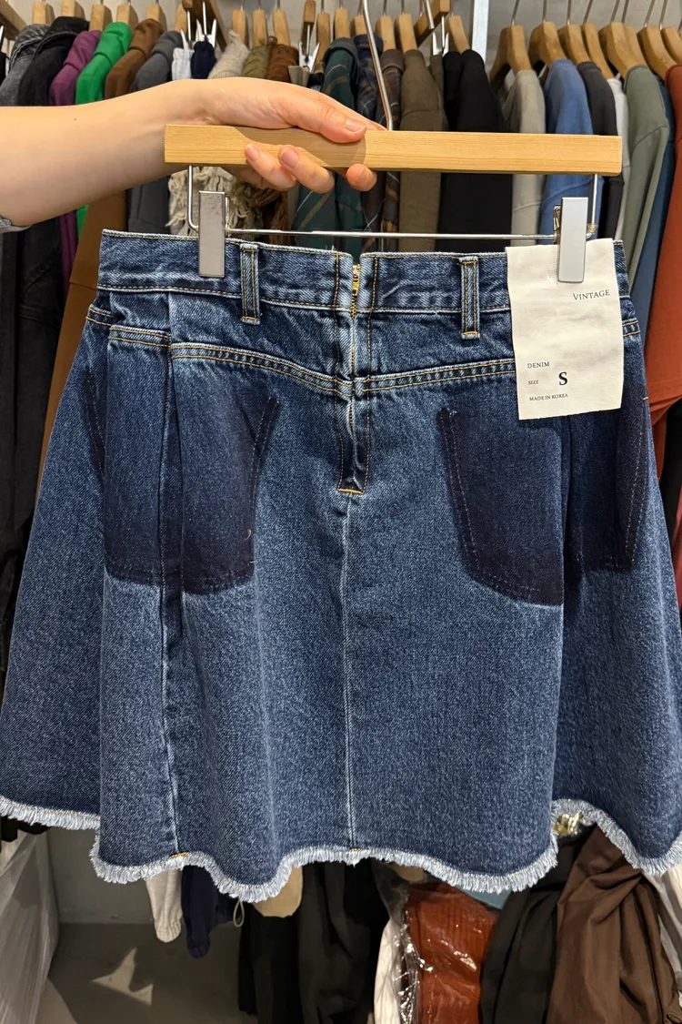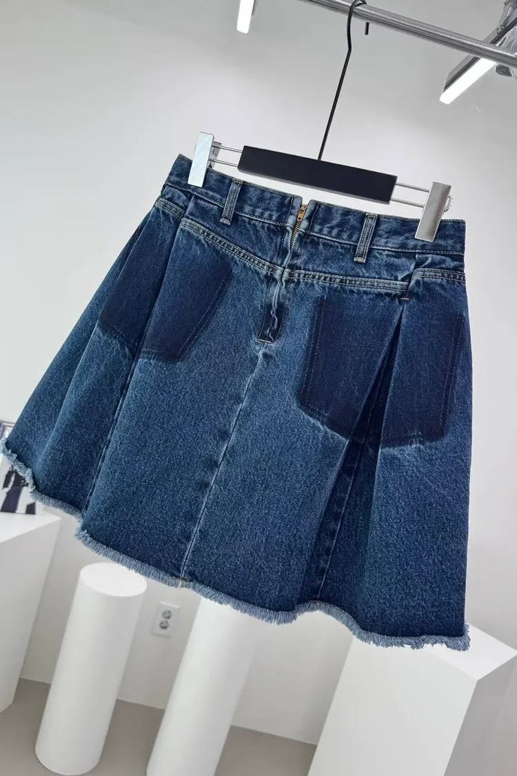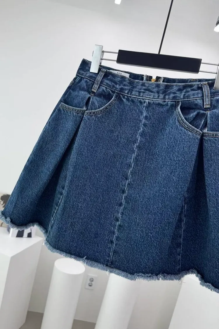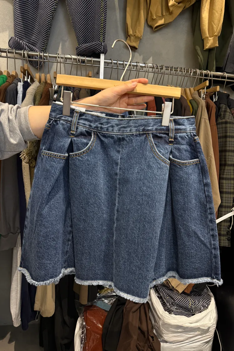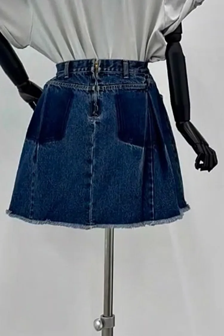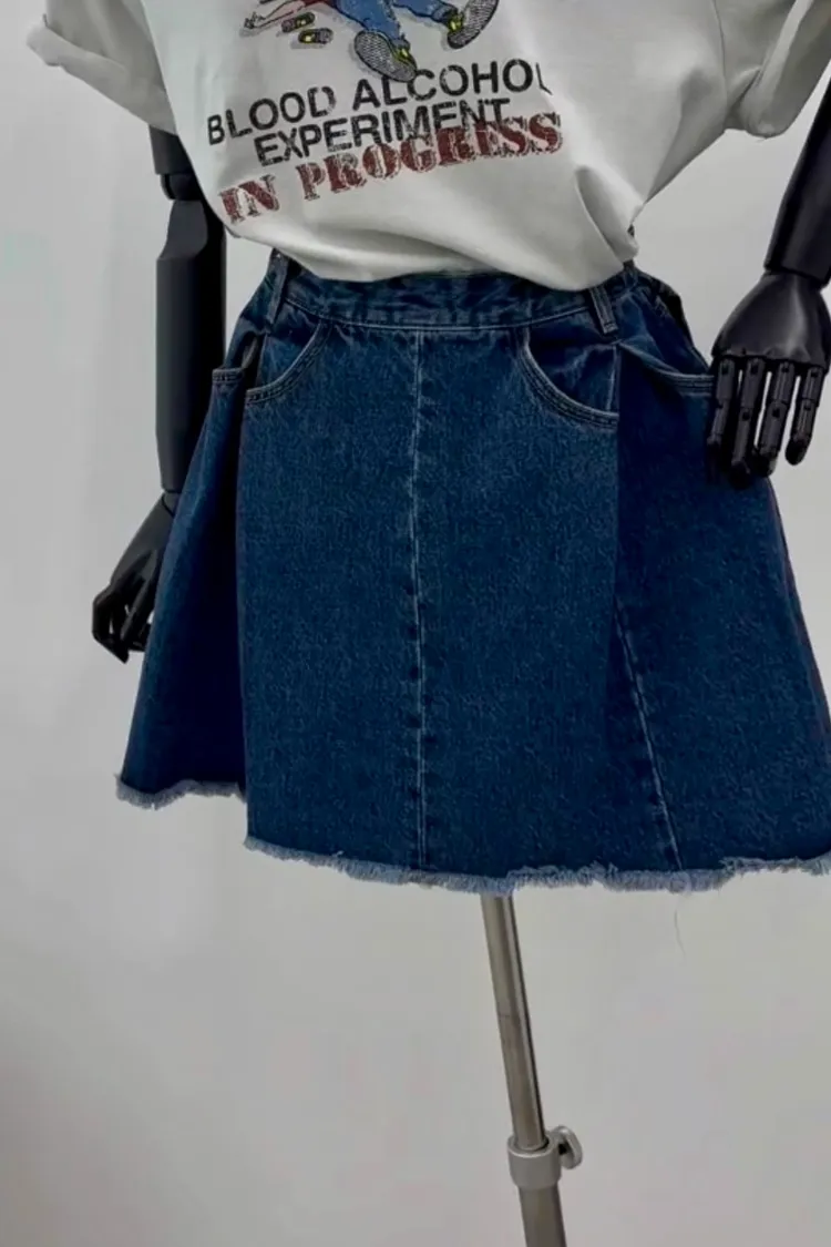 造型內壓褶鬚邊牛仔短裙(一色)