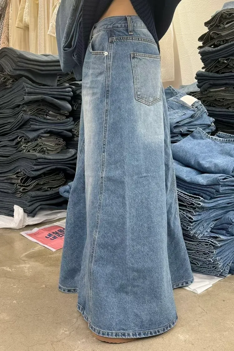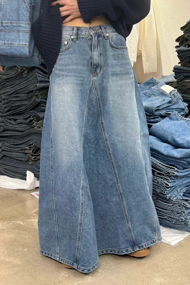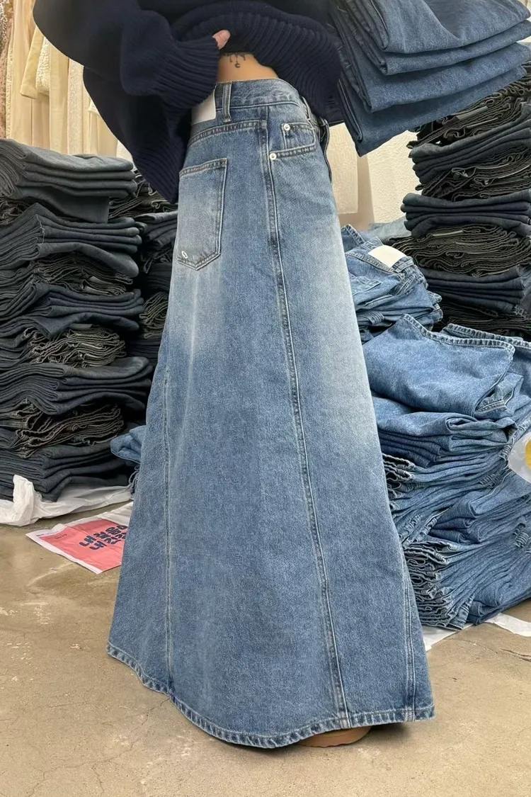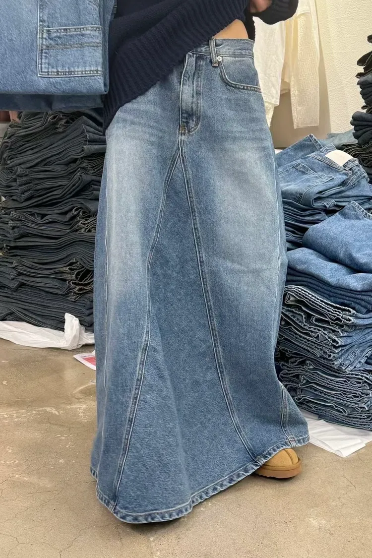 跟Kitty一樣變長腿了!剪裁牛仔長裙(一色)