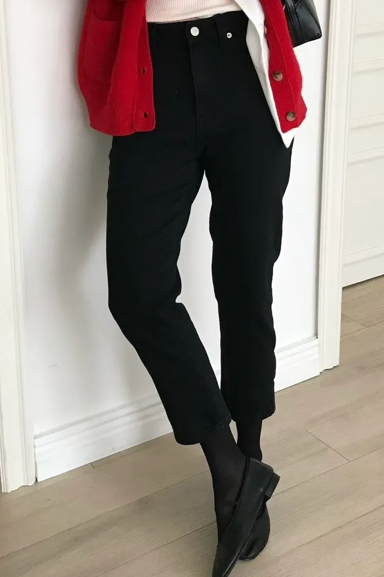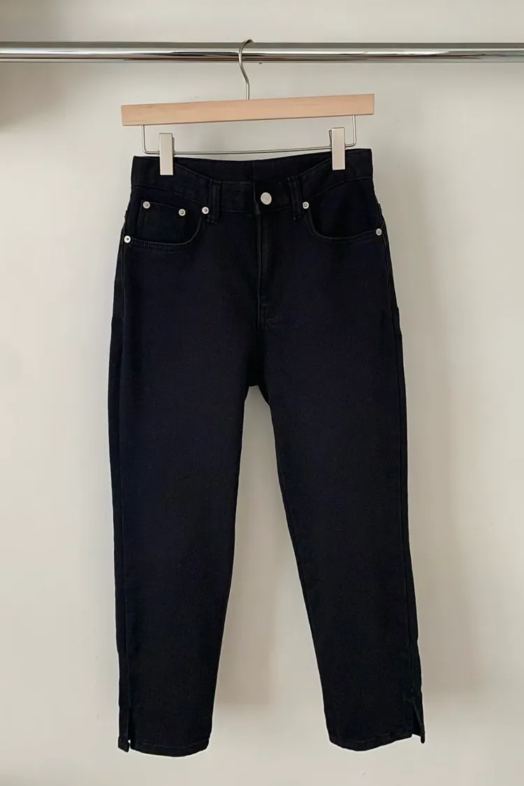 褲腳開衩小直筒牛仔褲(一色)