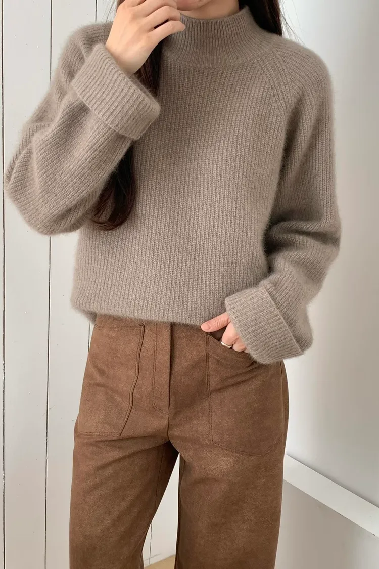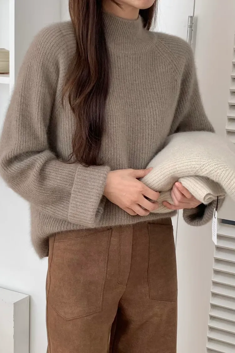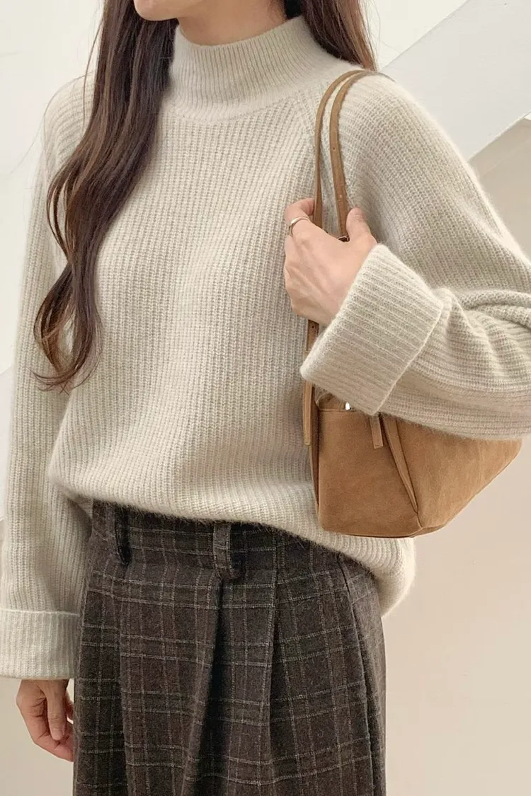 經典陪伴!小高領坑條浣熊羊毛毛衣(二色)