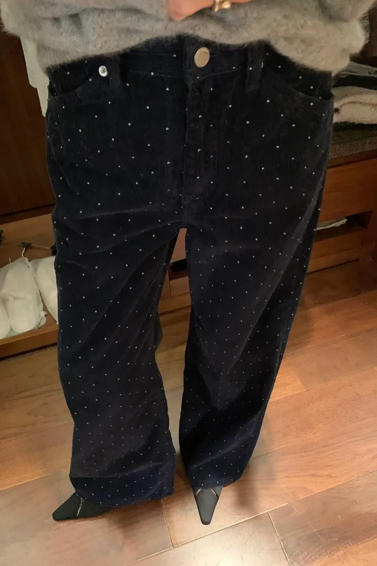 巴黎女孩燈芯絨點點長腿褲(一色)