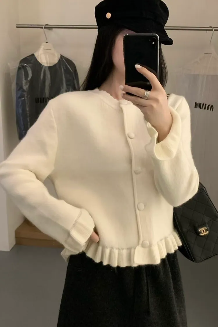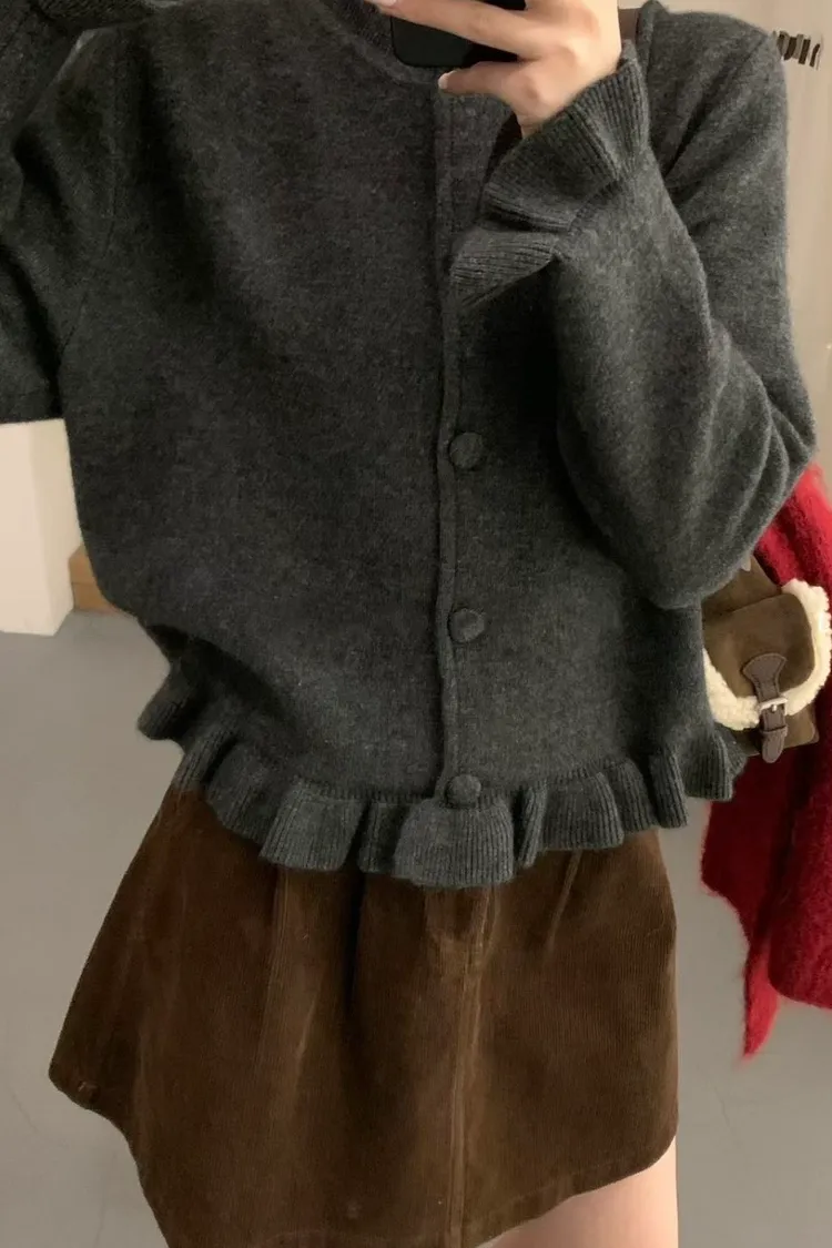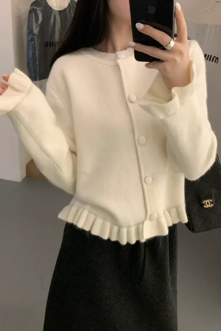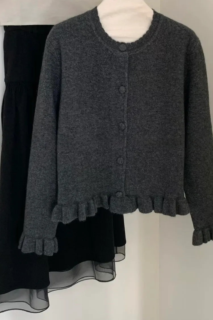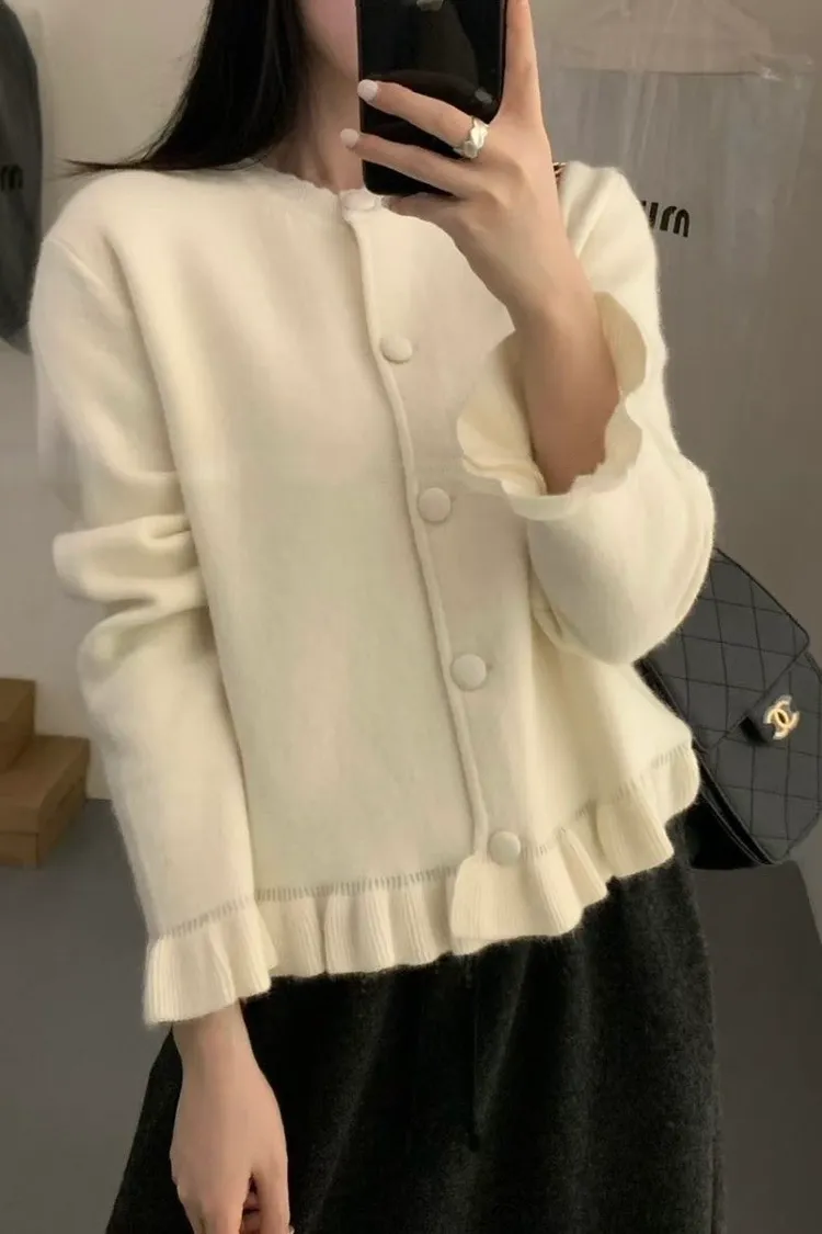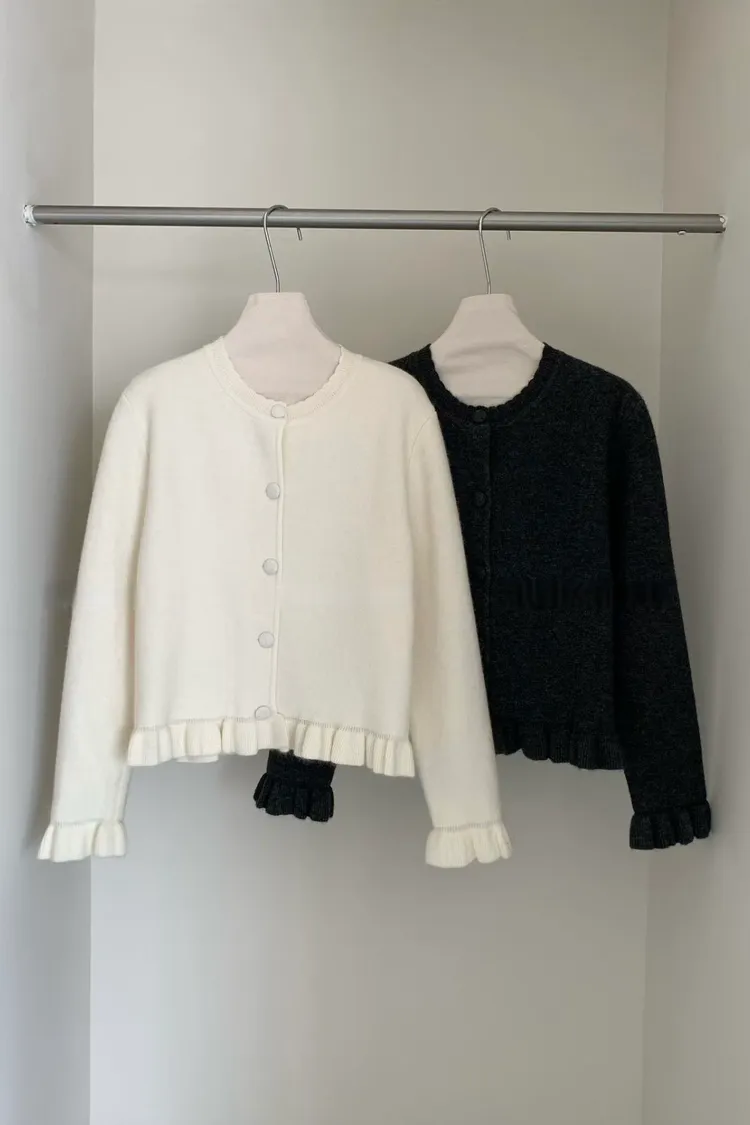 羊絨混紡荷葉排釦毛衣(二色)