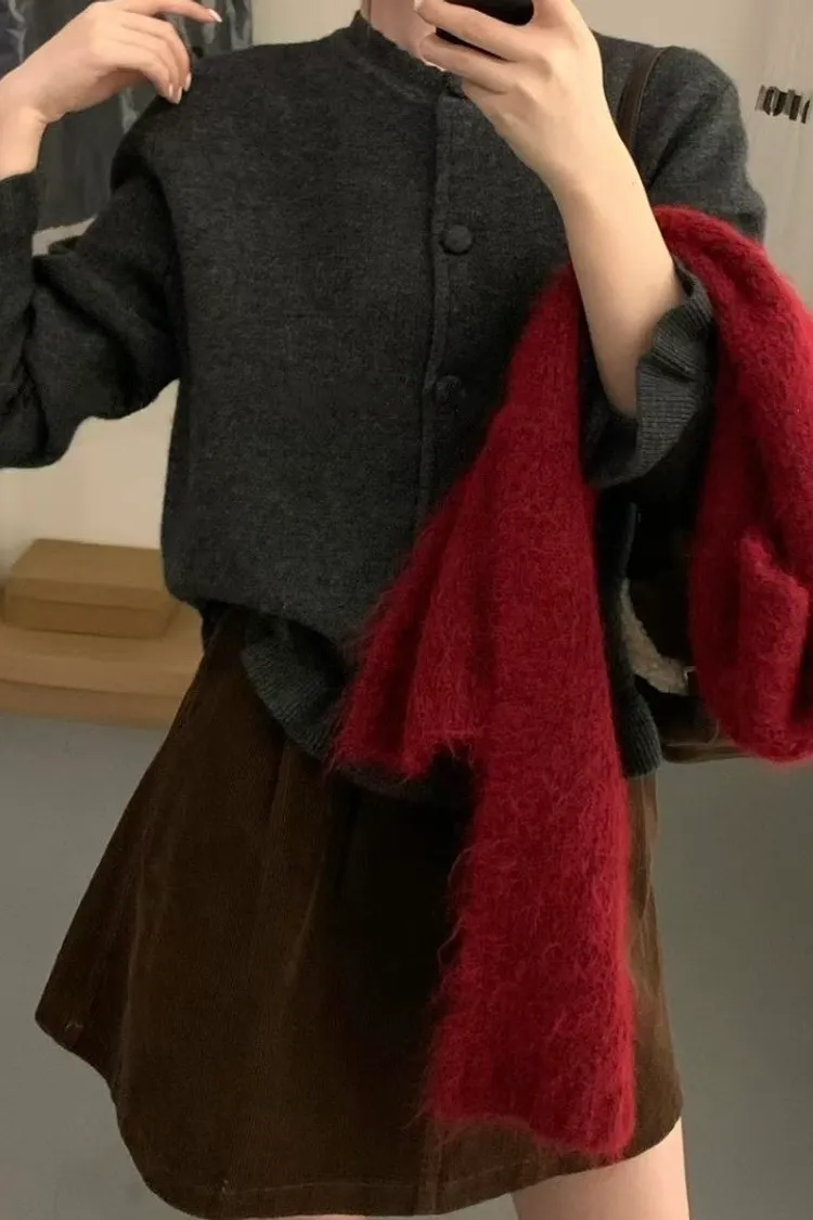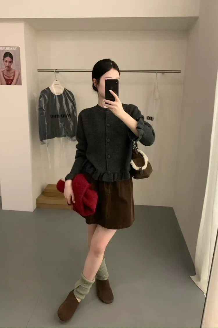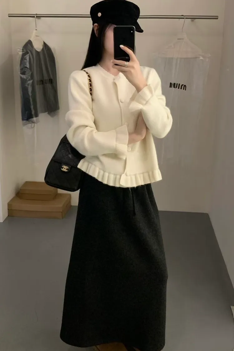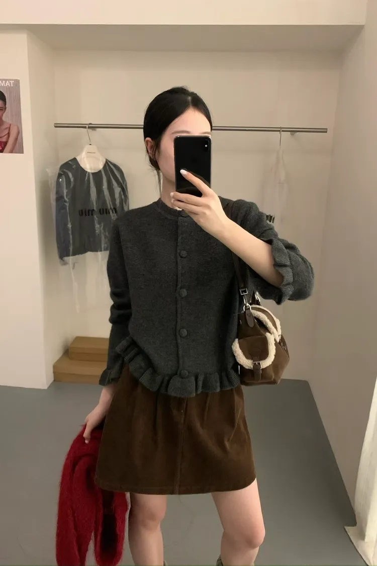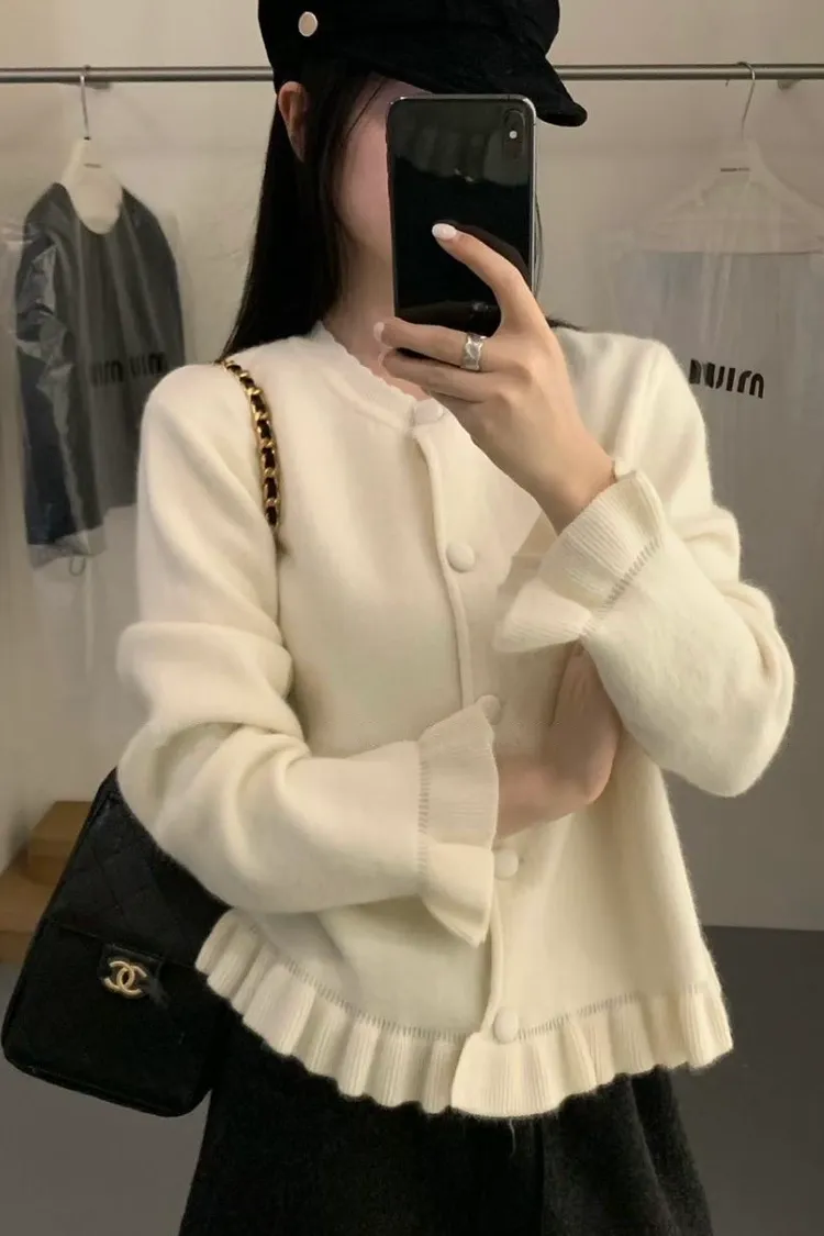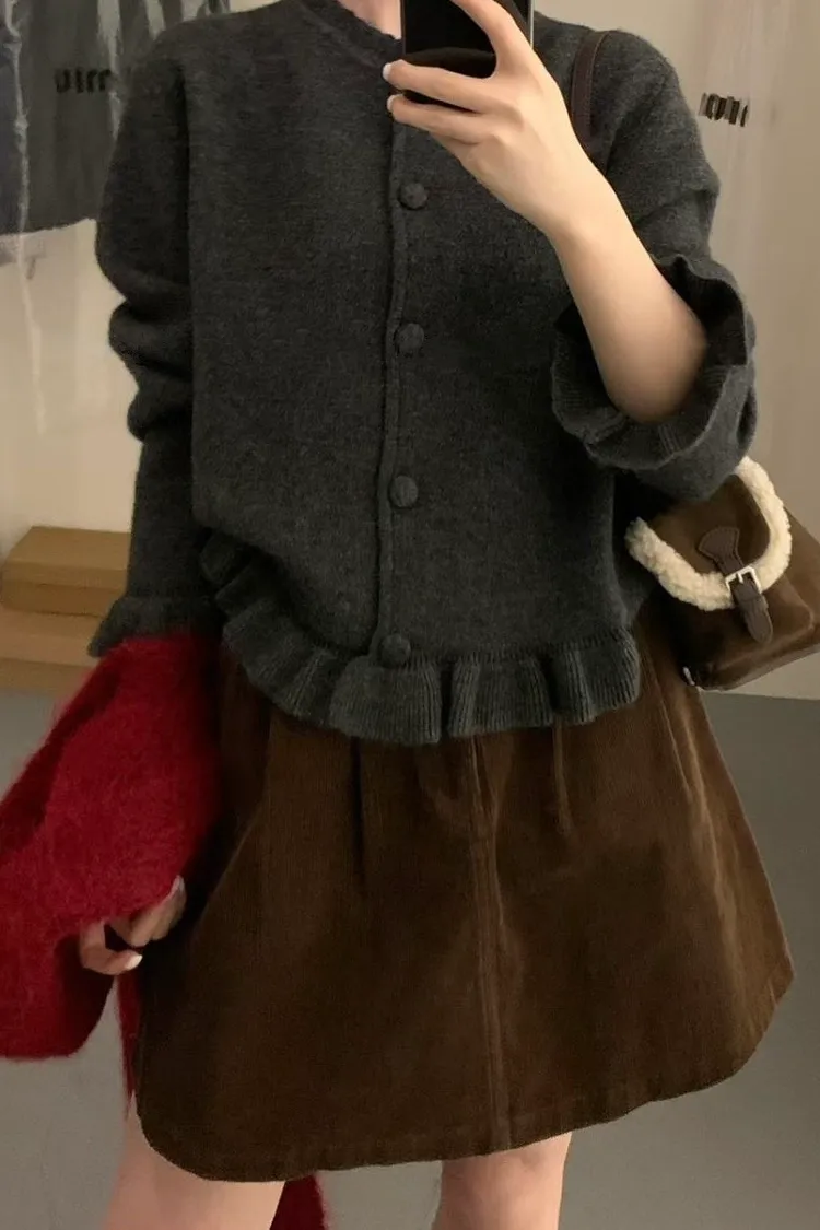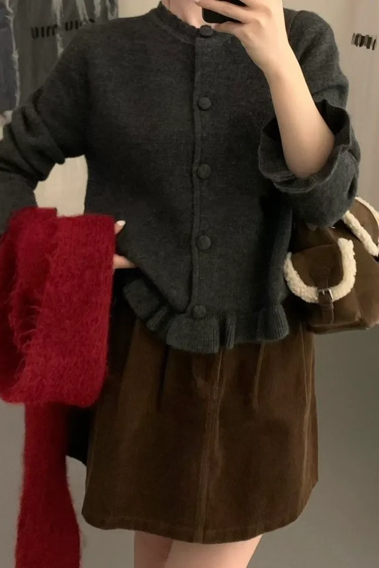 羊絨混紡荷葉排釦毛衣(二色)