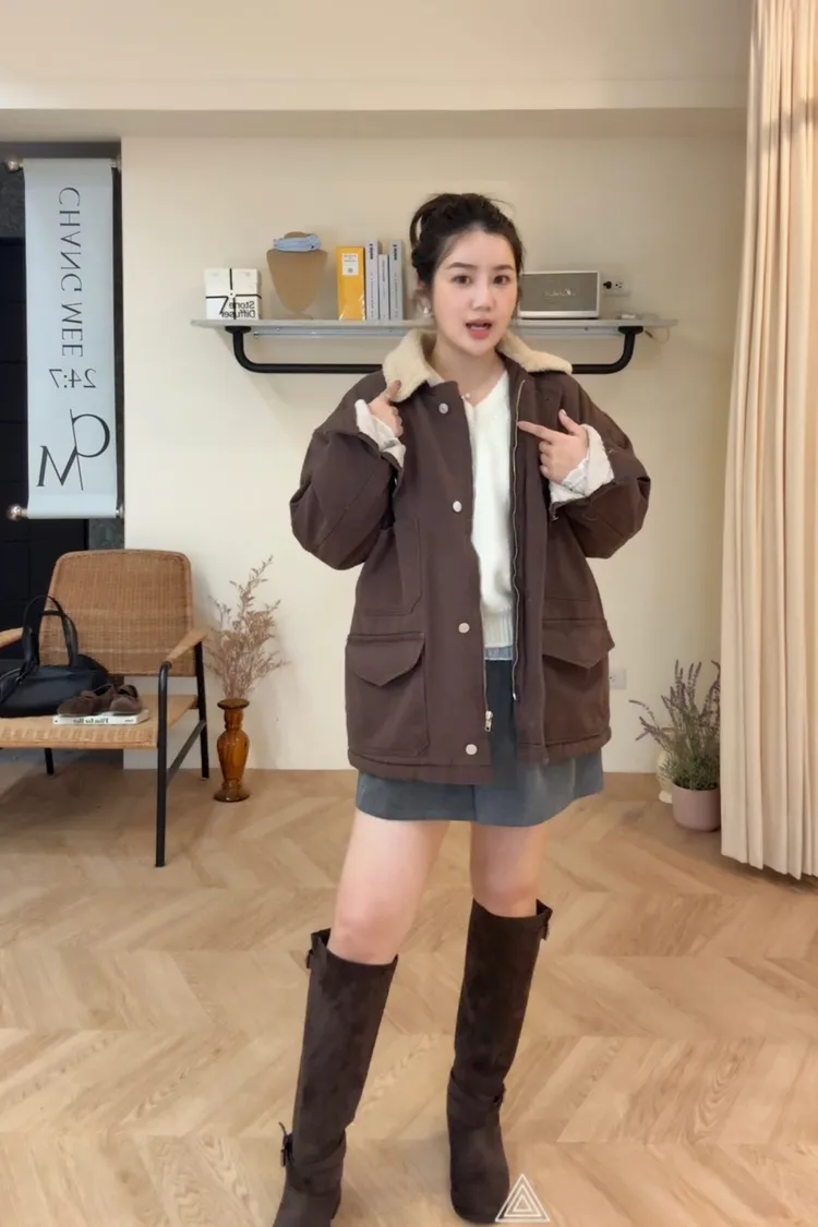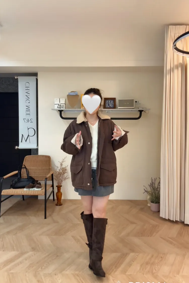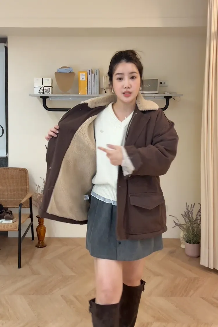 巴恩風搖粒絨領片袖鋪棉外套(一色)