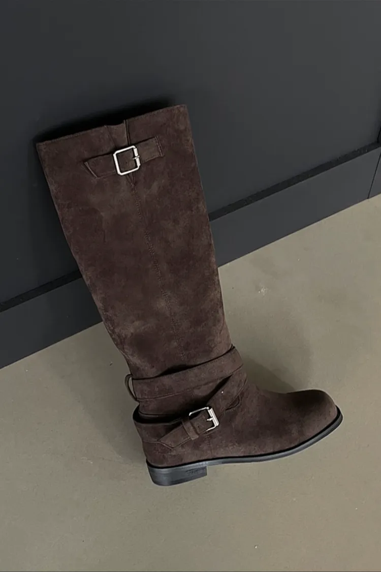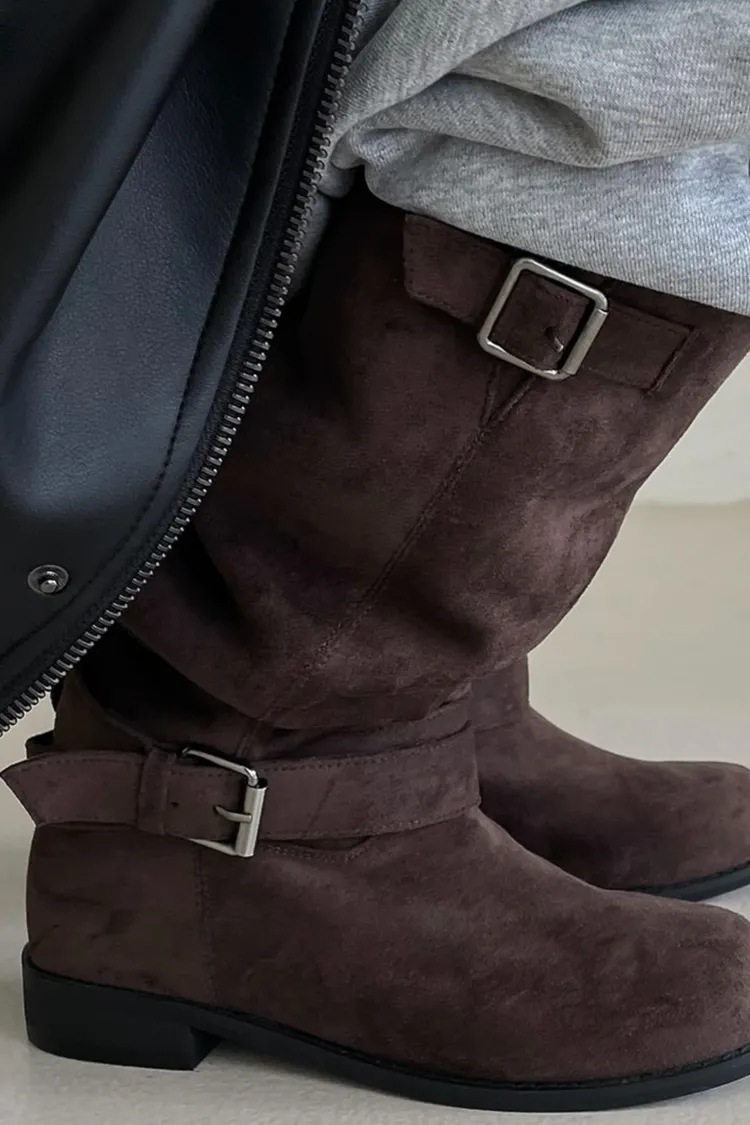 麂皮側釦長靴(一色)