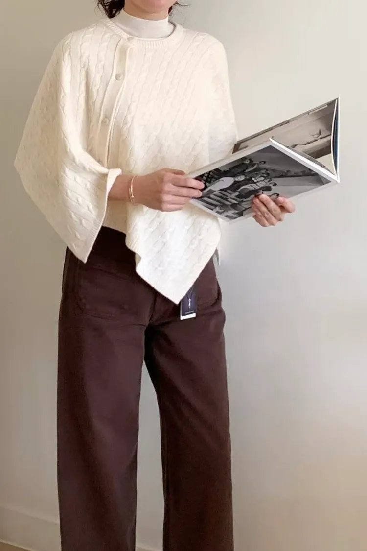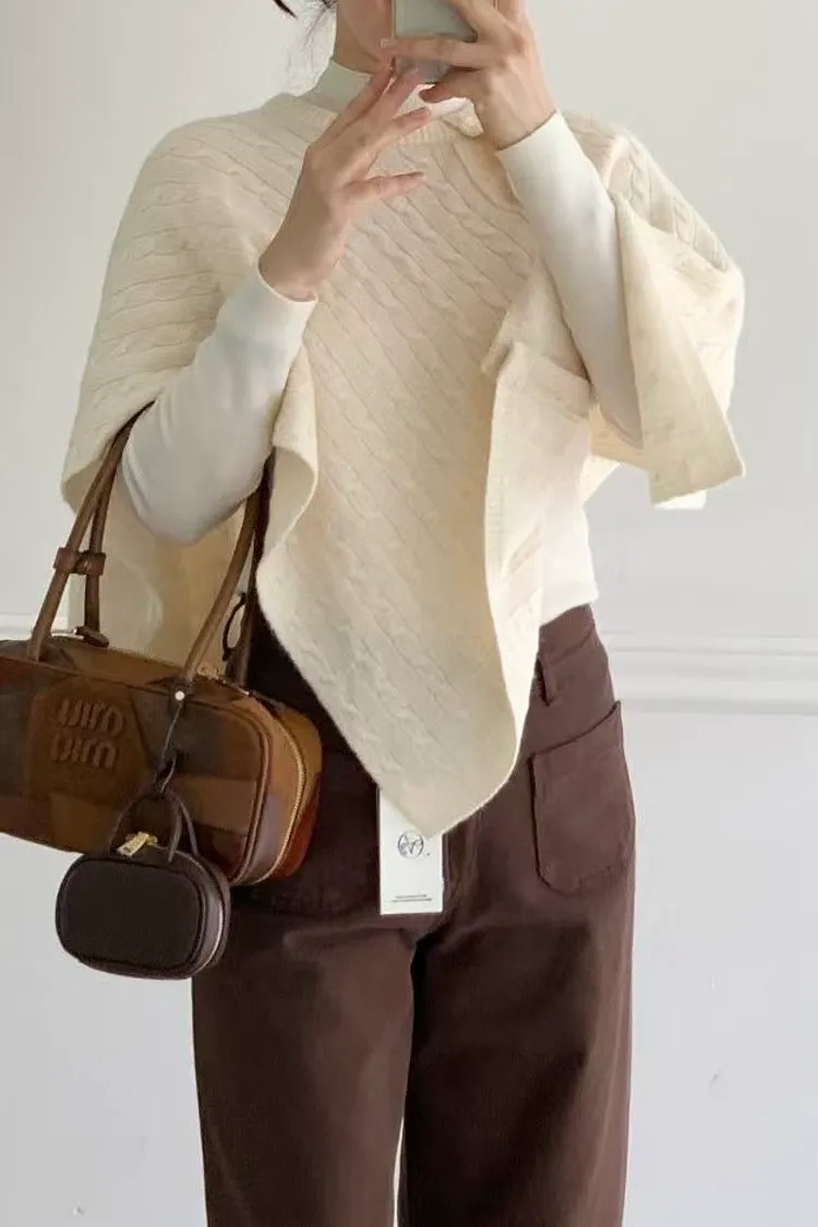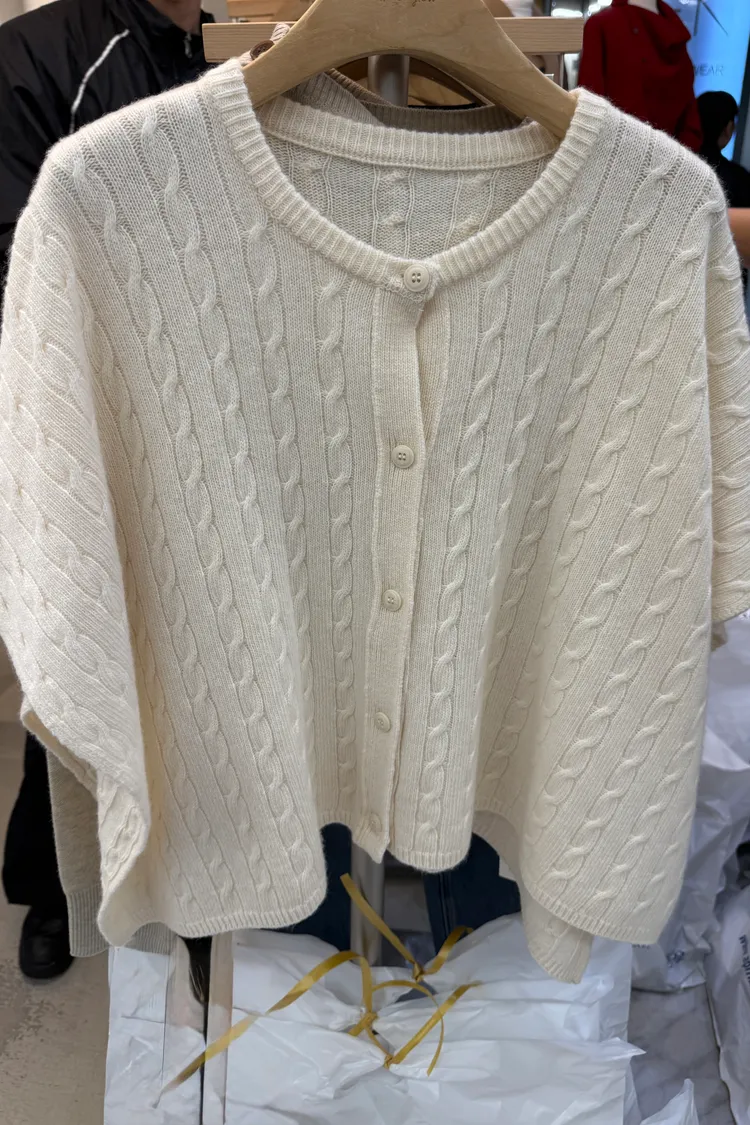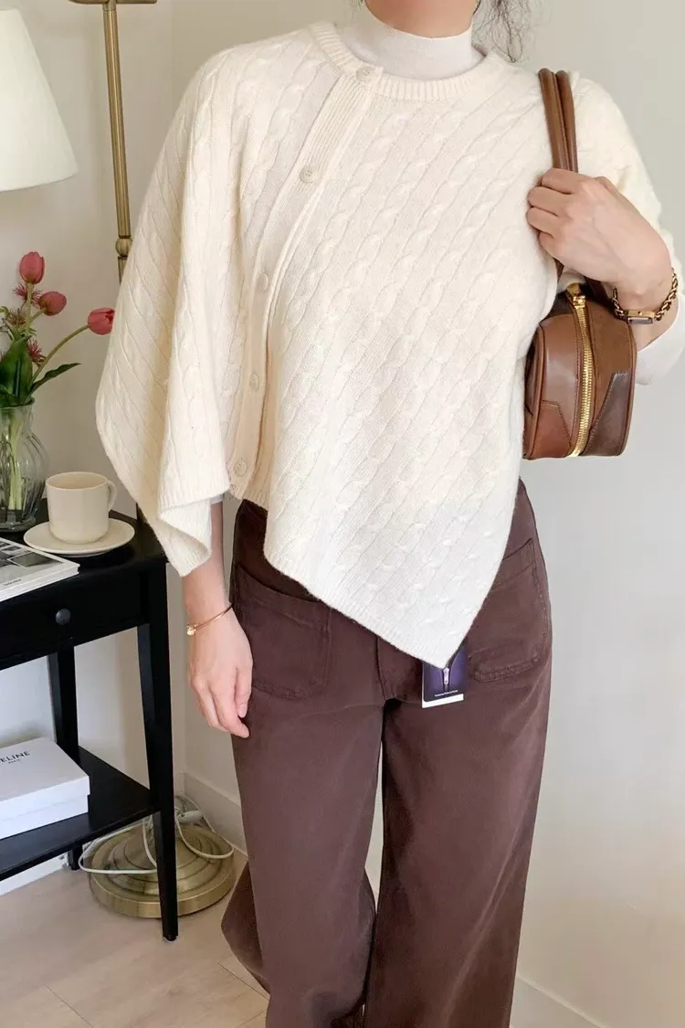 (限量)麻花排釦多穿法斗篷針織衫(一色)