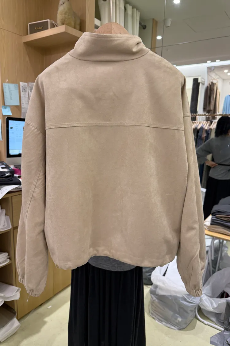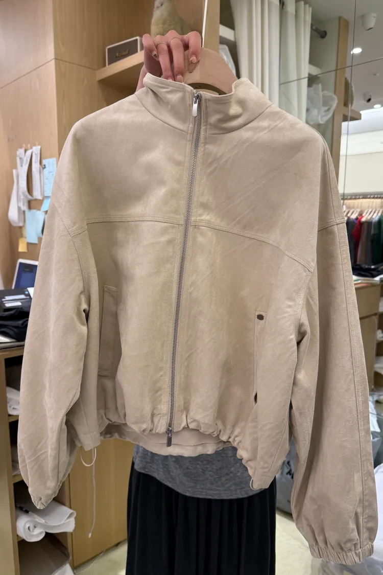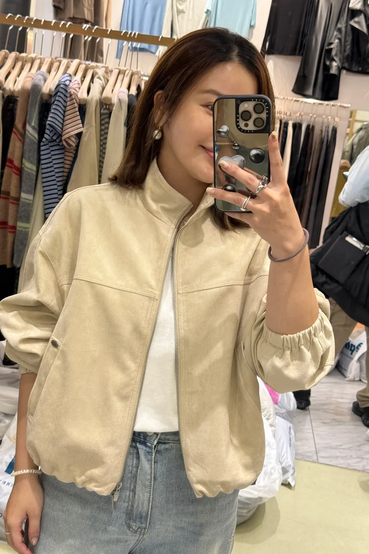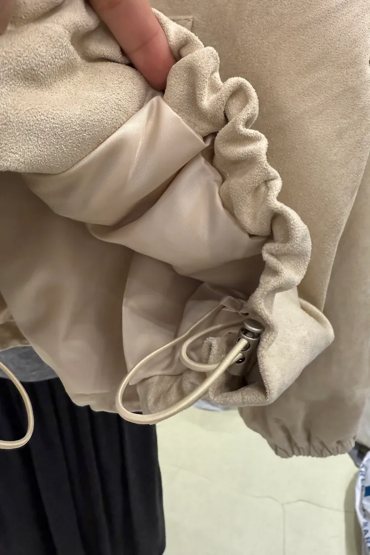 立領麂皮短絨內抽繩收腰夾克(一色)