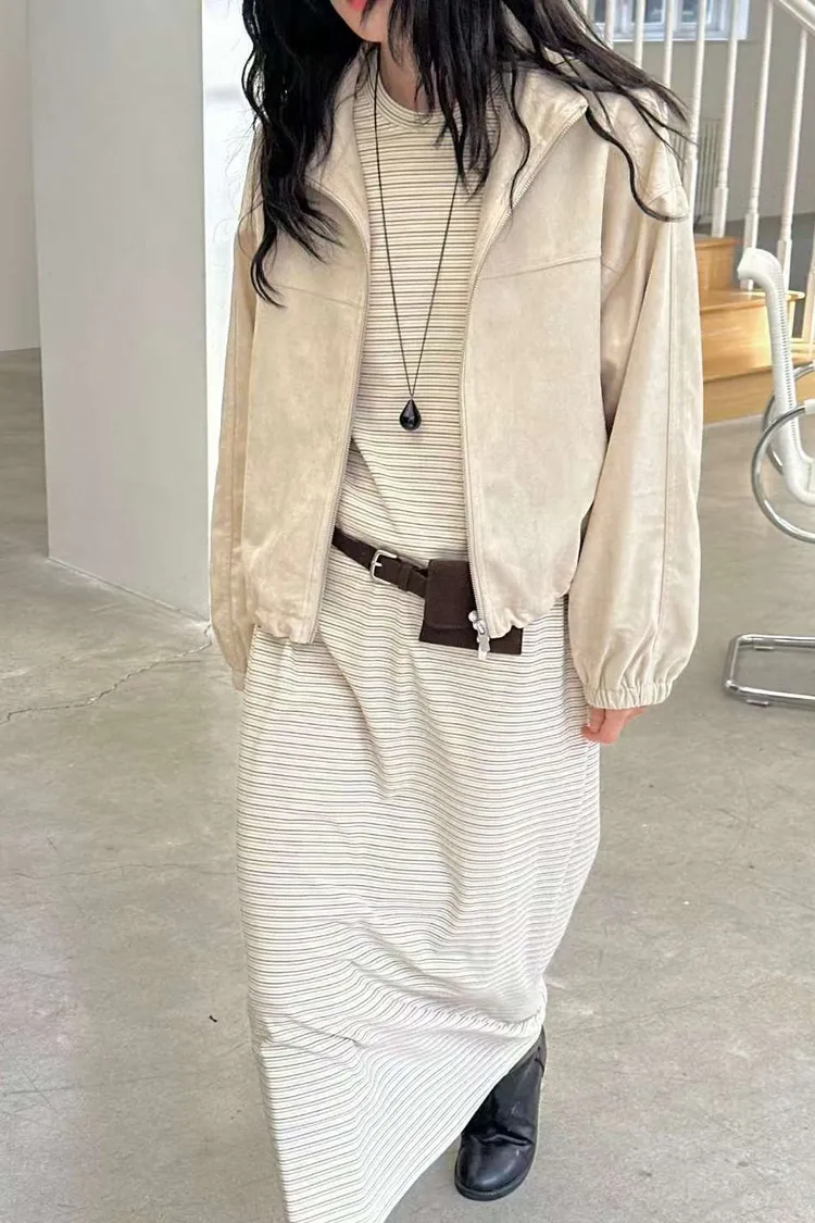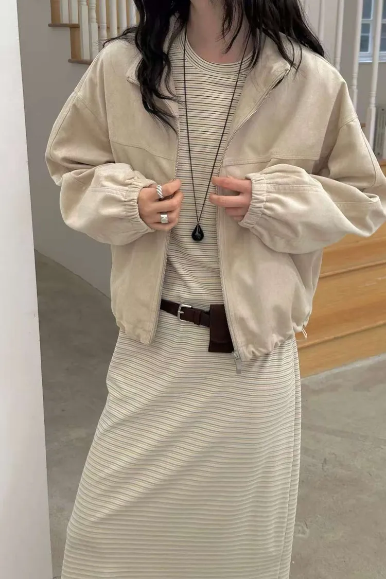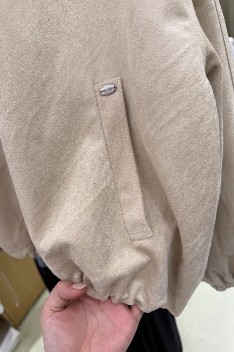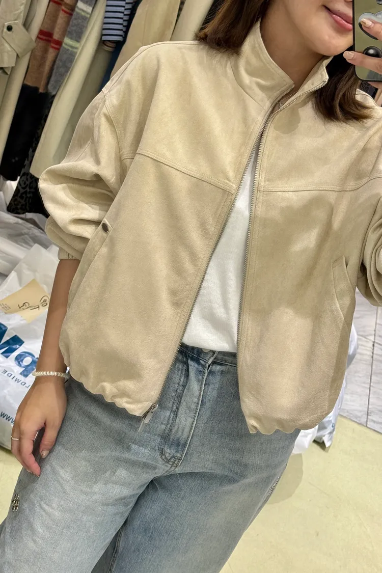 立領麂皮短絨內抽繩收腰夾克(一色)