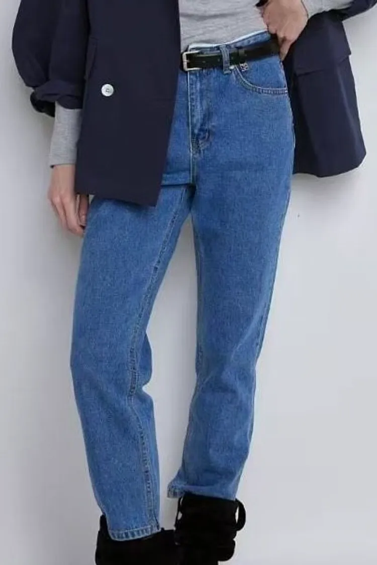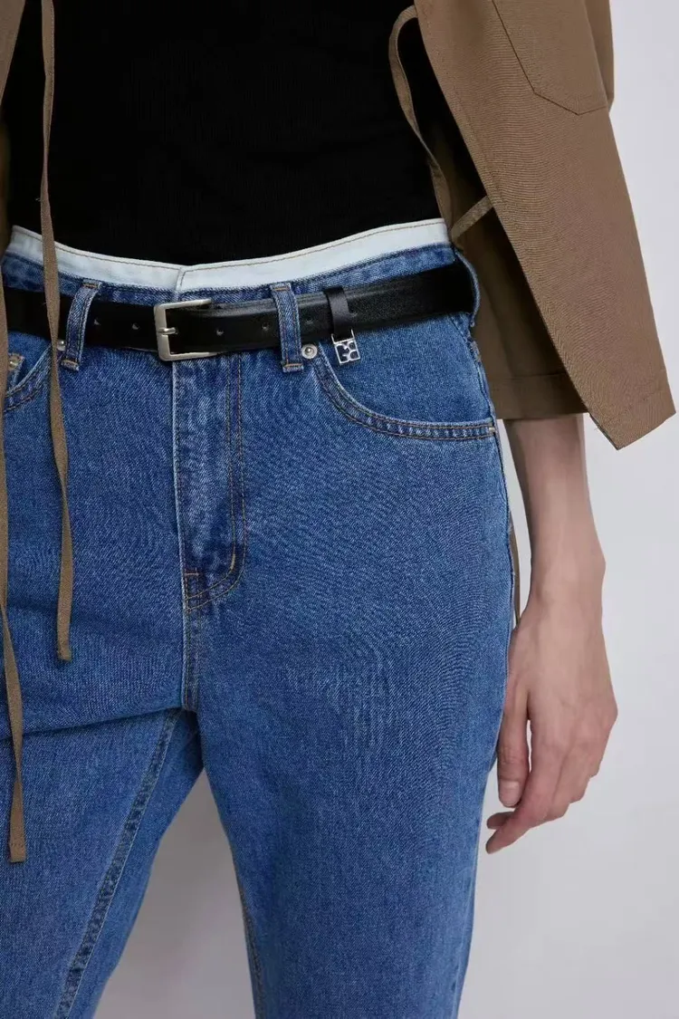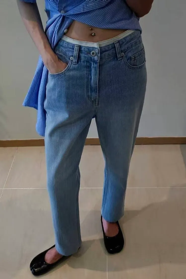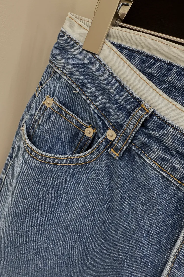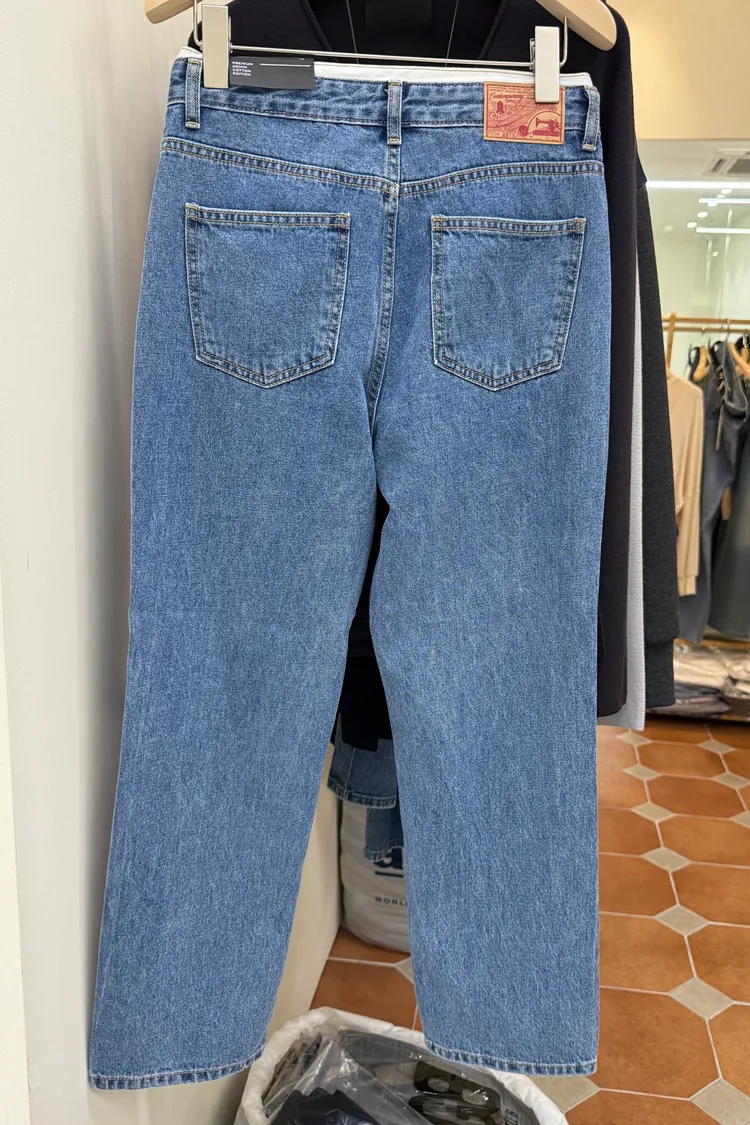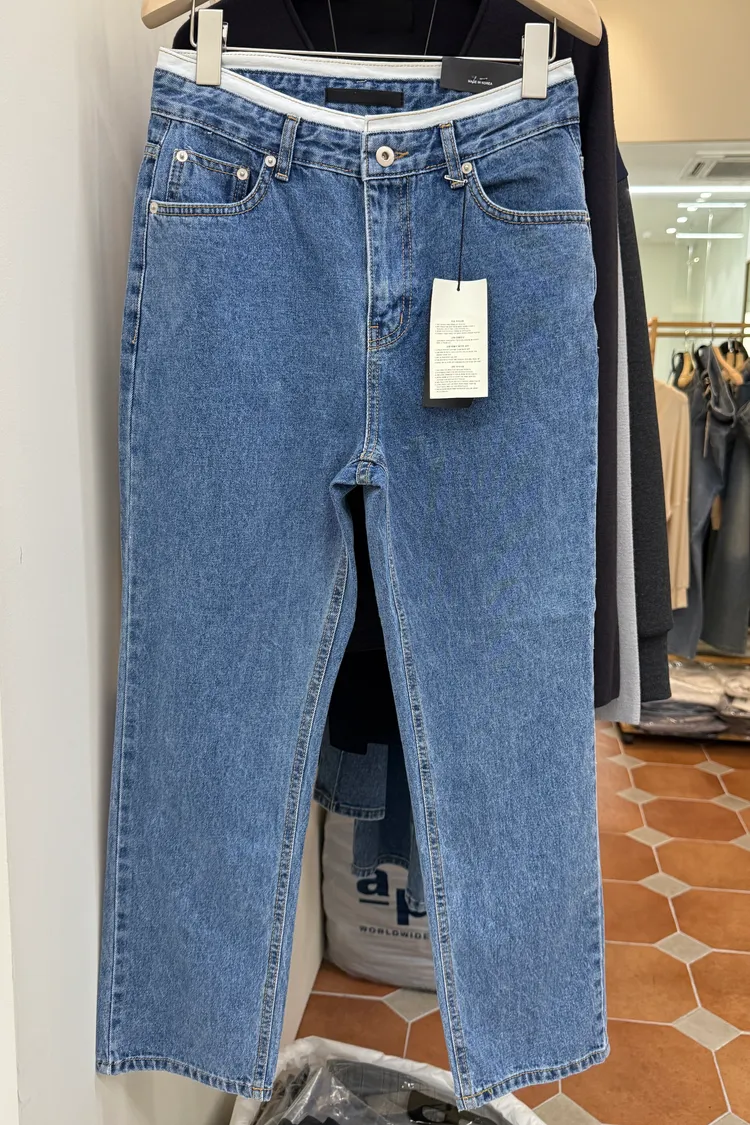 白邊腰頭修身小直筒牛仔褲(一色)