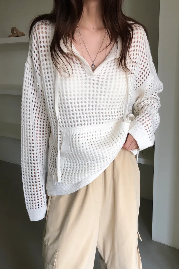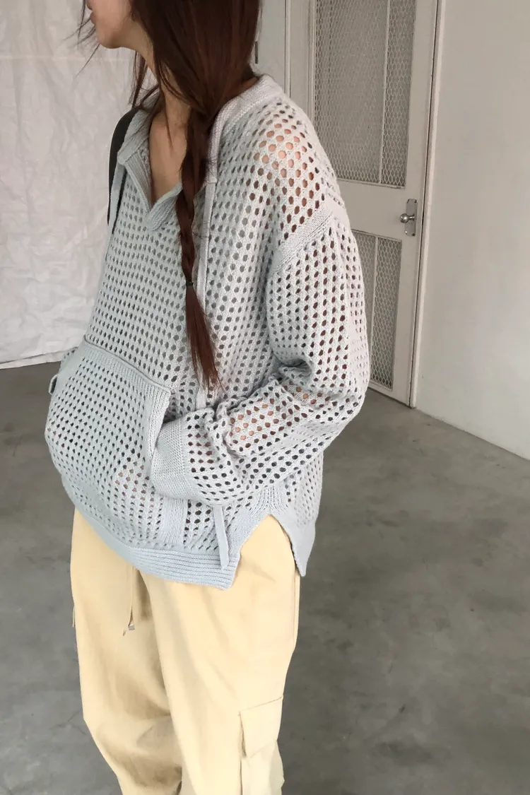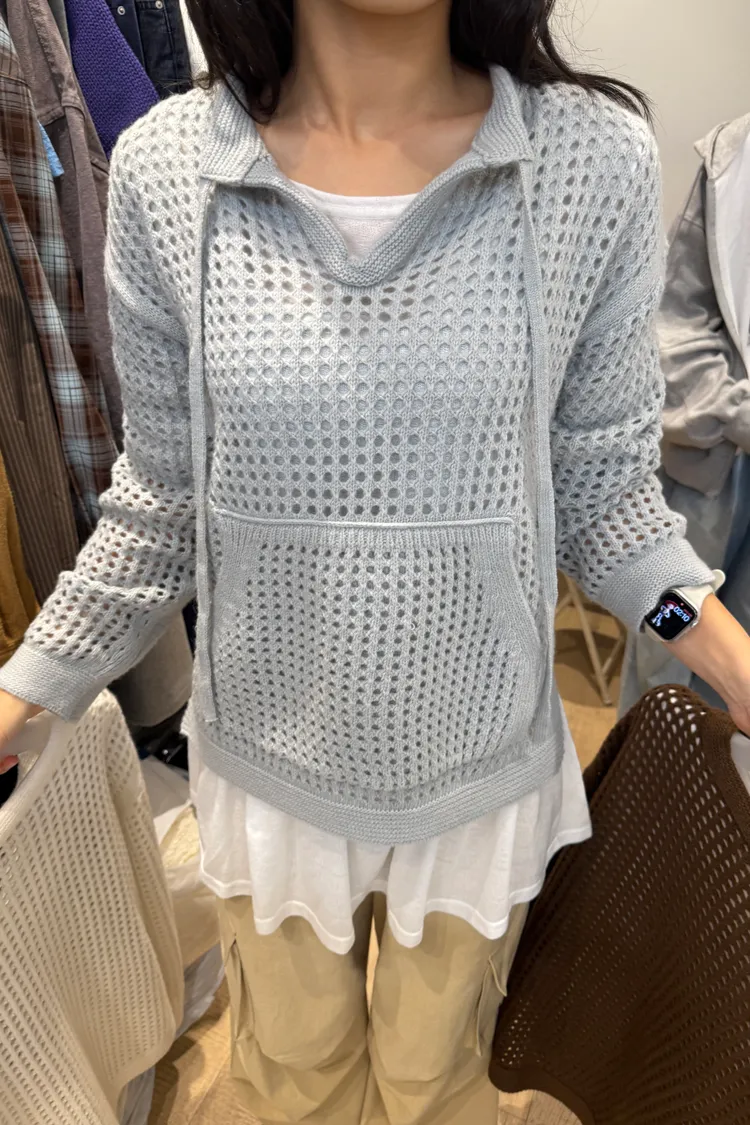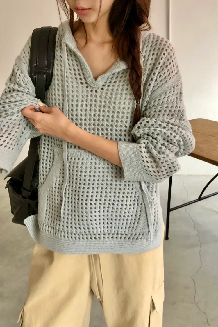 治癒秋氛圓領洞洞口袋針織衫(三色)