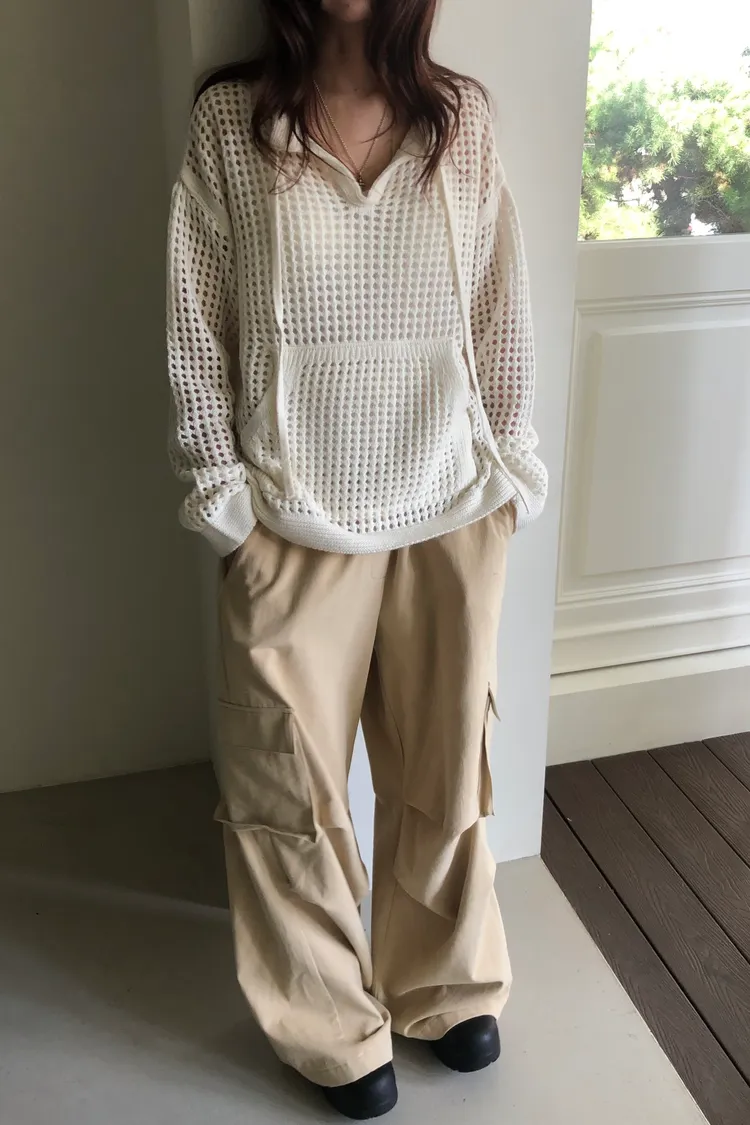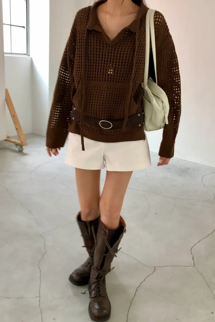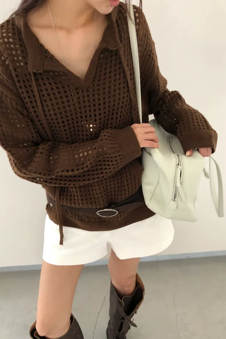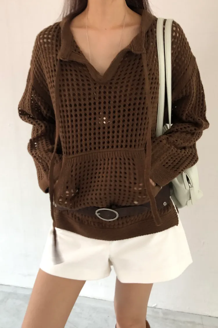 治癒秋氛圓領洞洞口袋針織衫(三色)