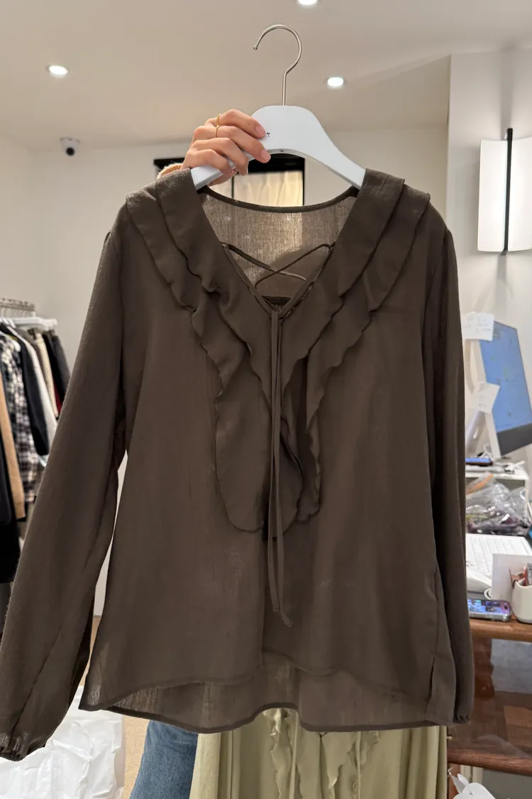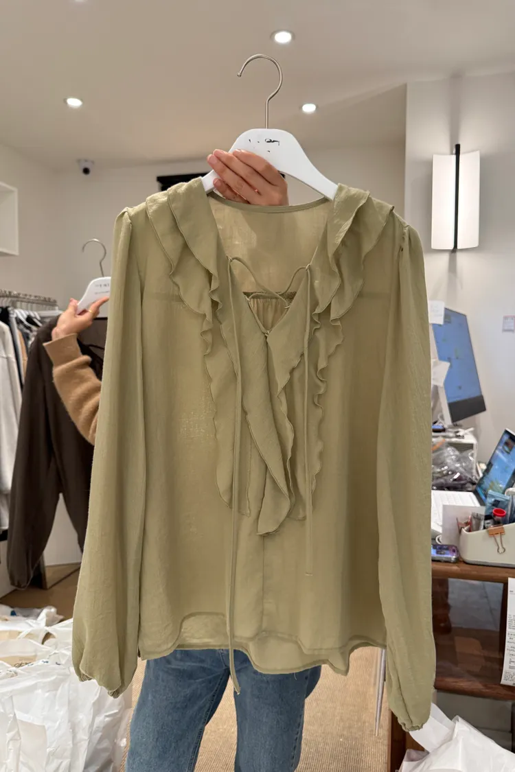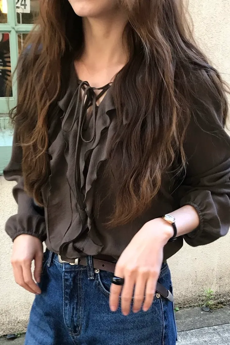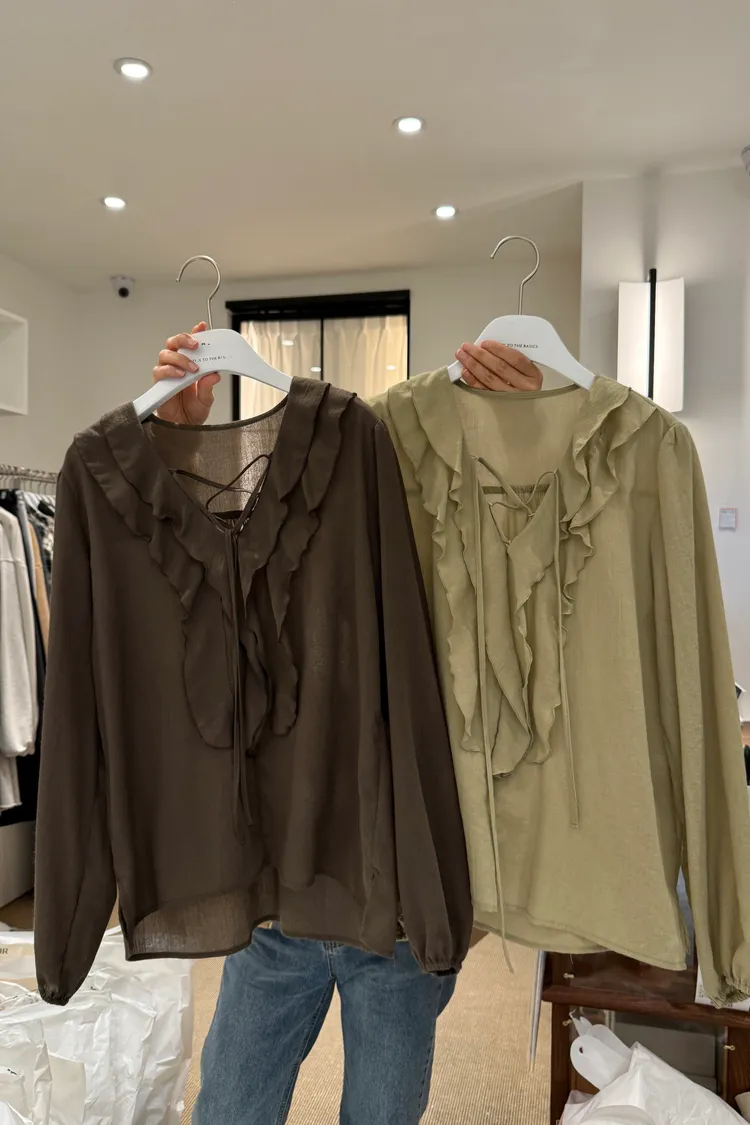 浪漫進行中波浪綁帶雪紡上衣(二色)