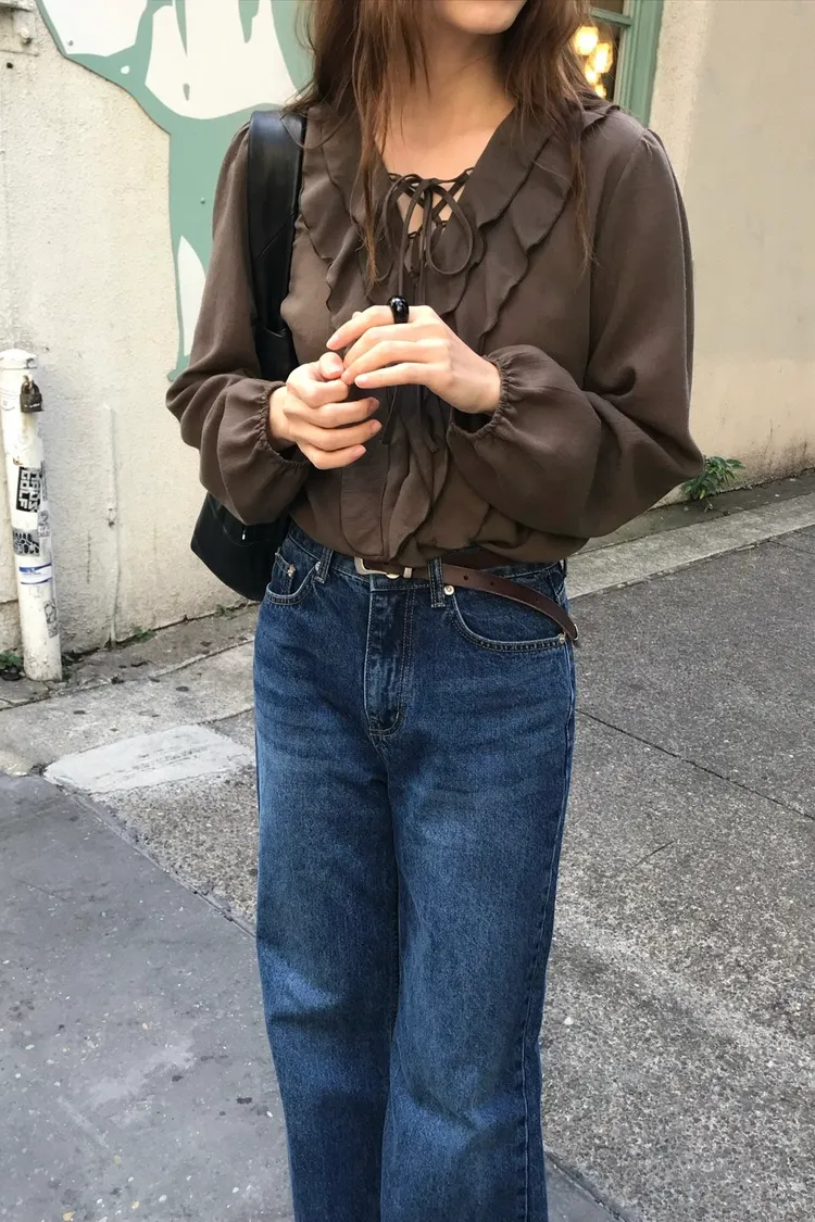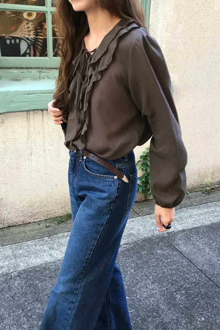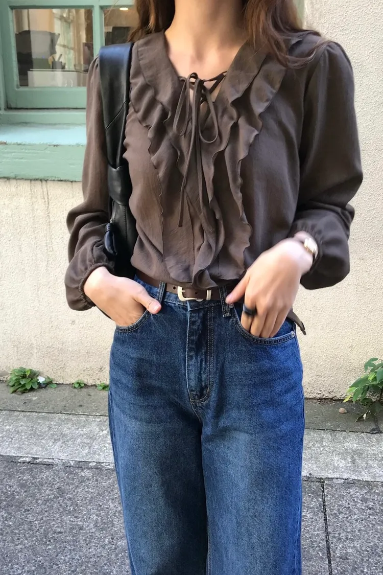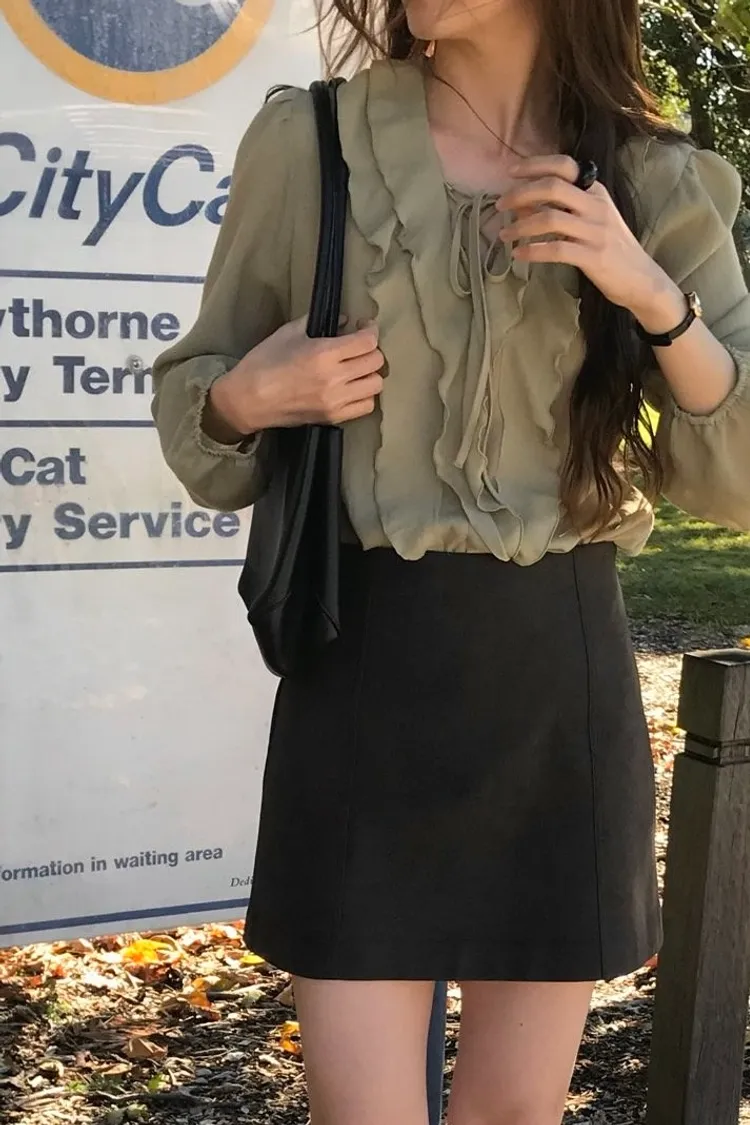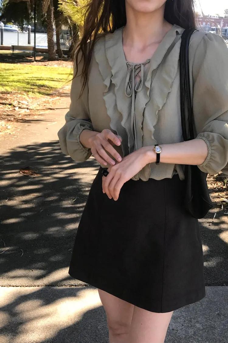 浪漫進行中波浪綁帶雪紡上衣(二色)