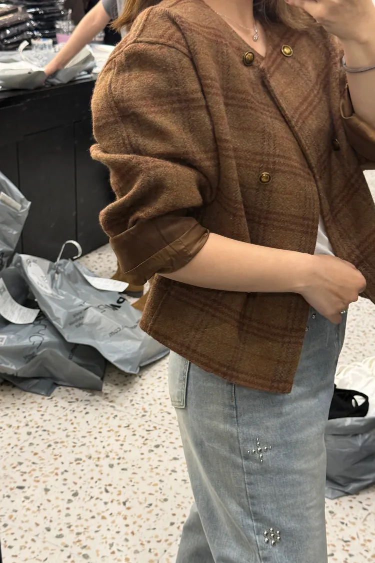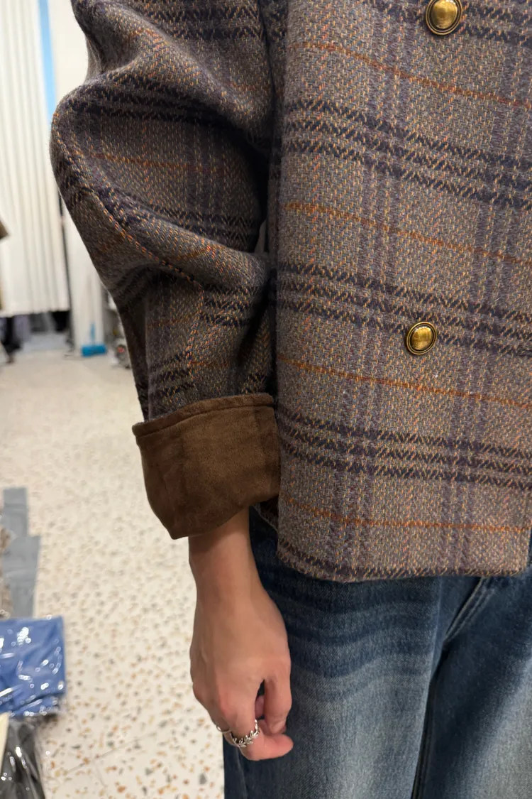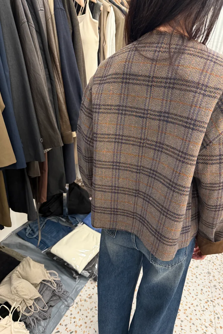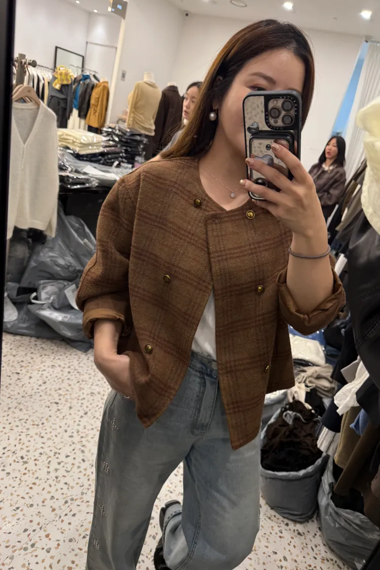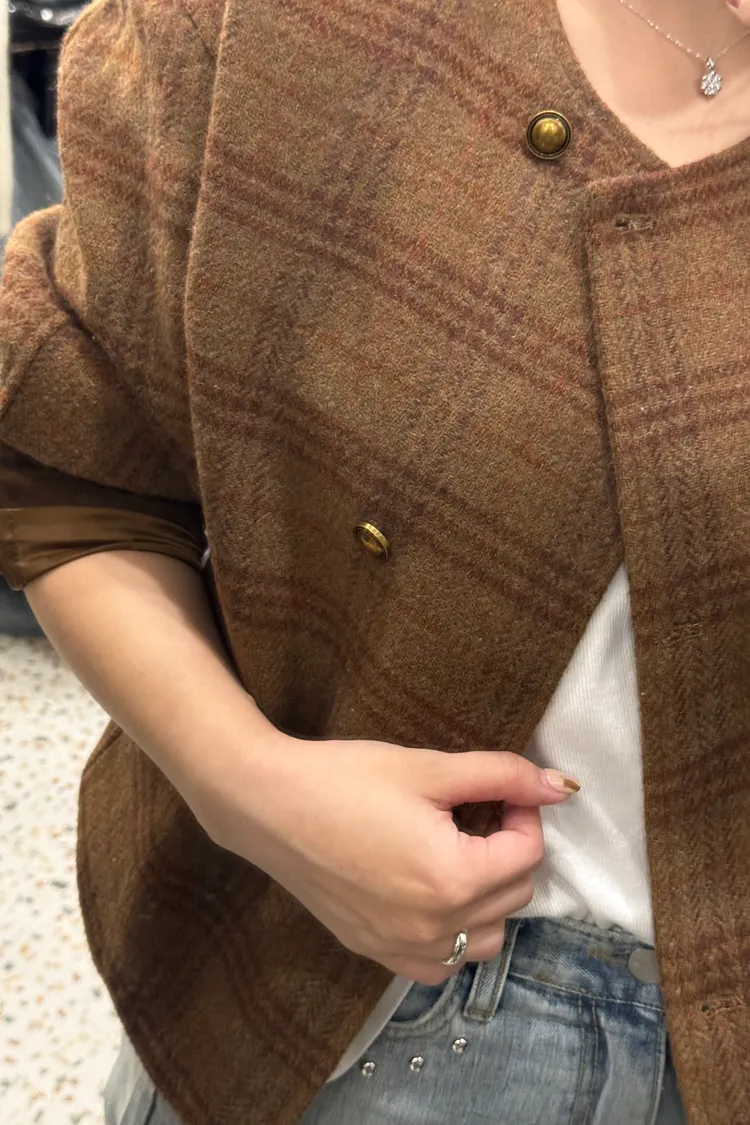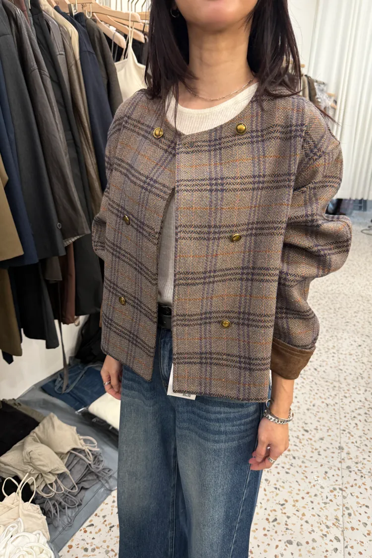 Best!輕感英倫圓領格紋排釦短大衣(二色)