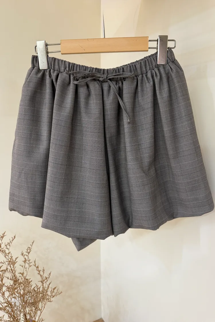 抽繩細格紋澎澎雲朵褲裙(二色)