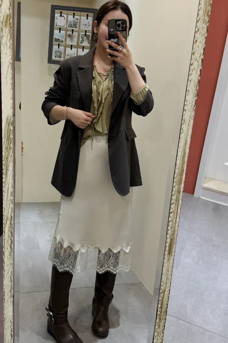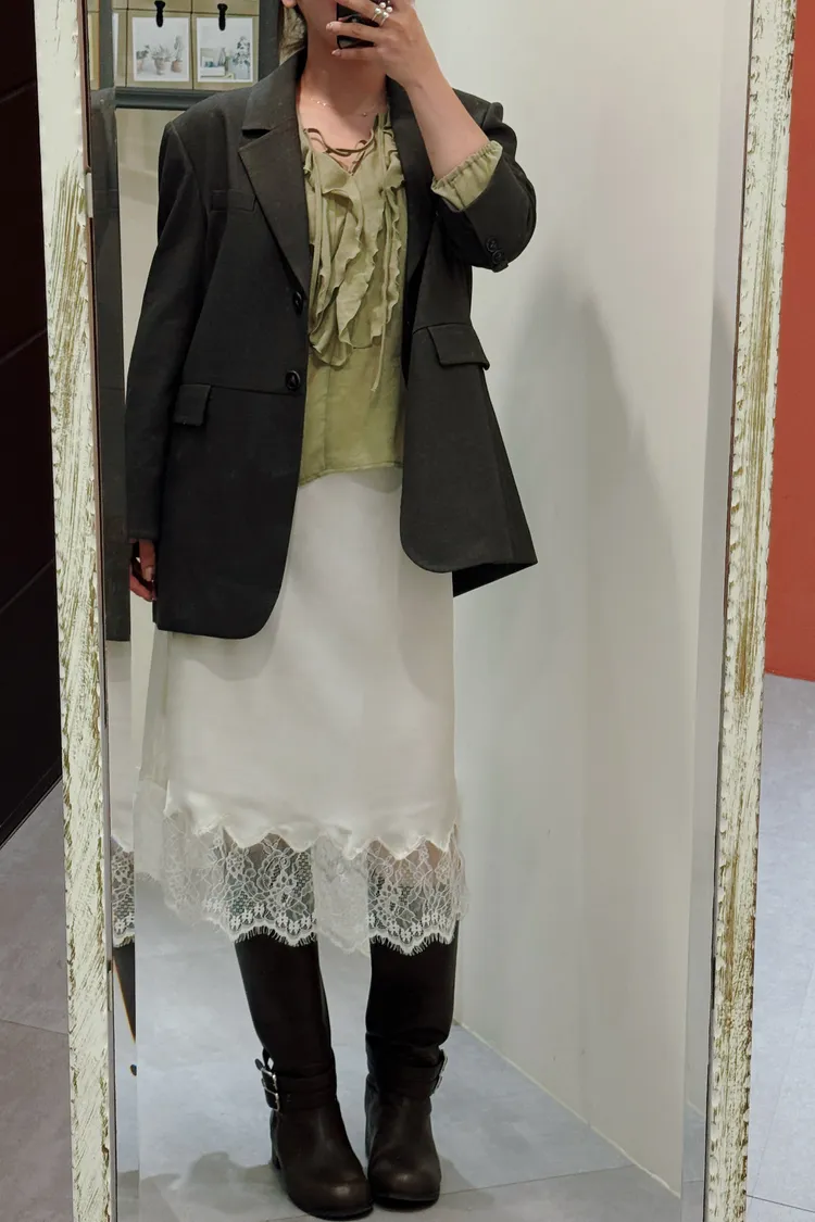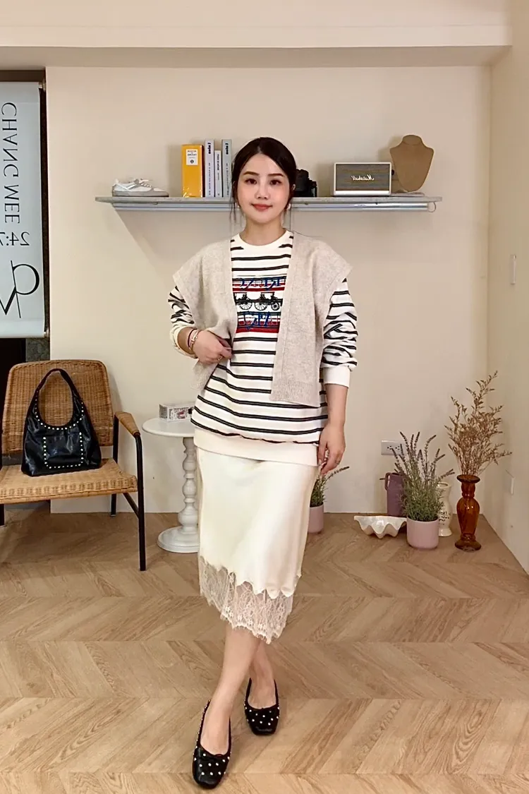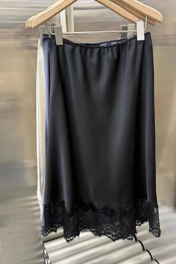 緞面蕾絲過膝裙(二色)