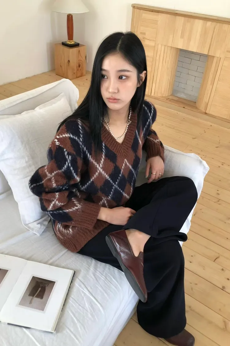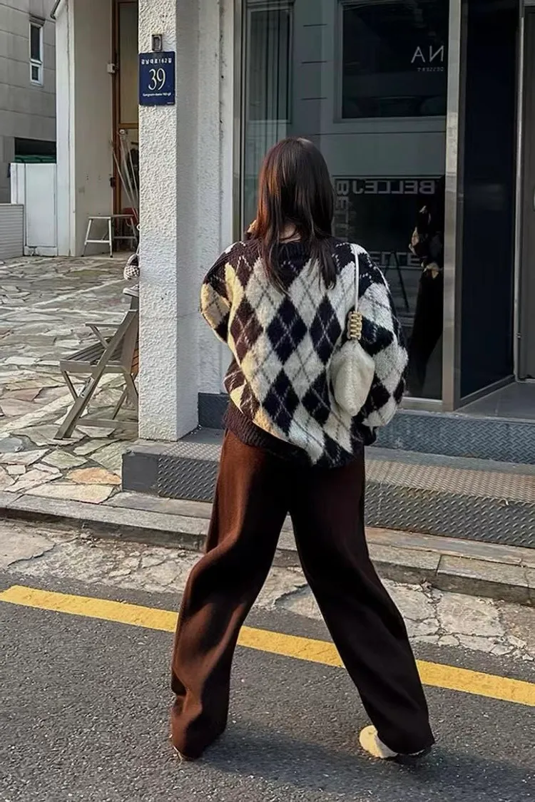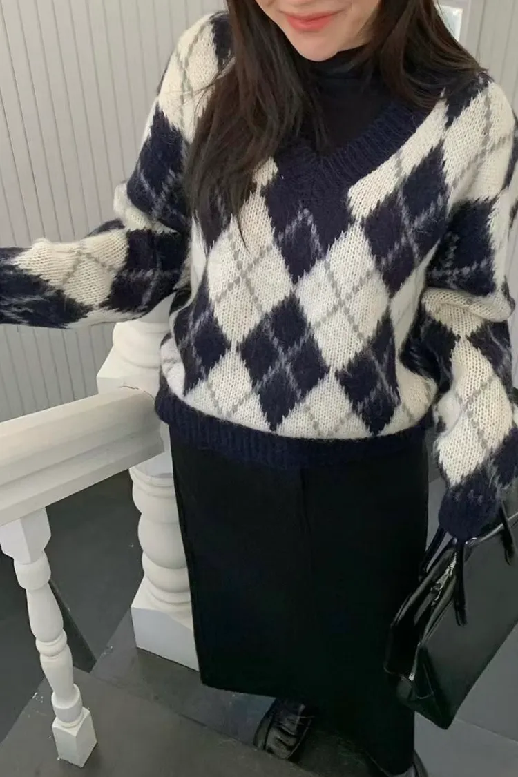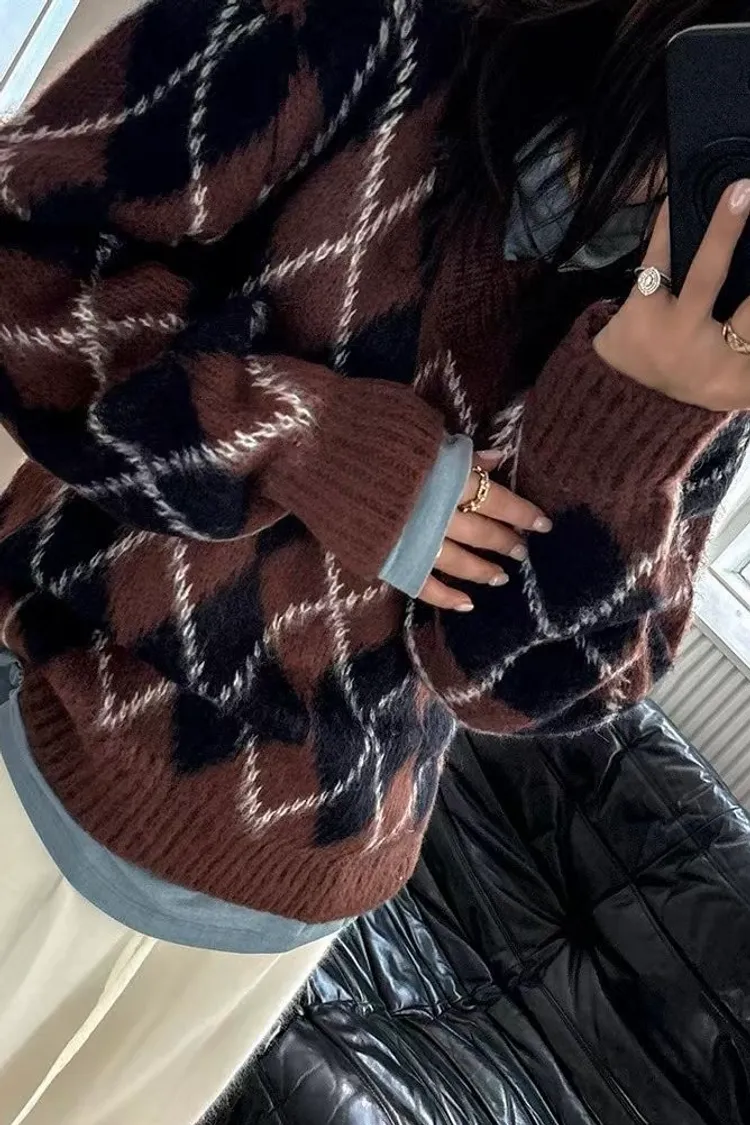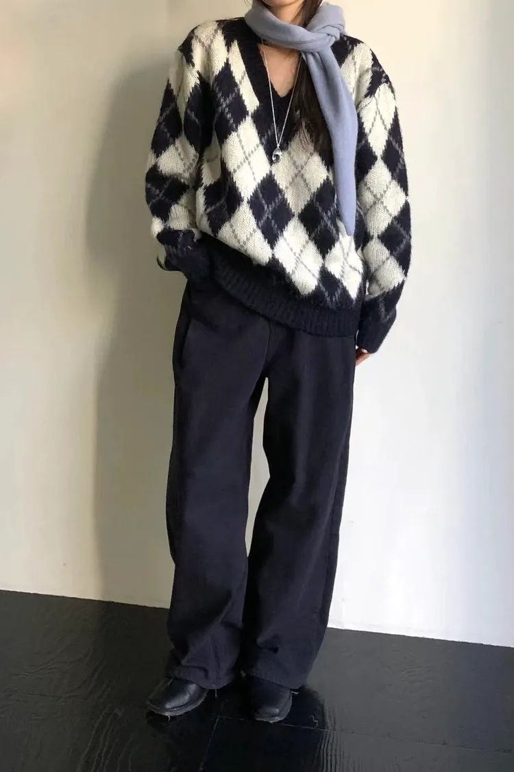 滿版配色菱格毛衣(二色)