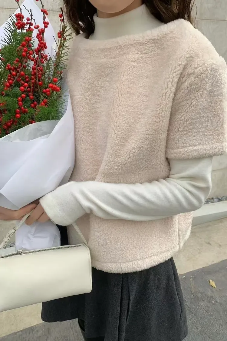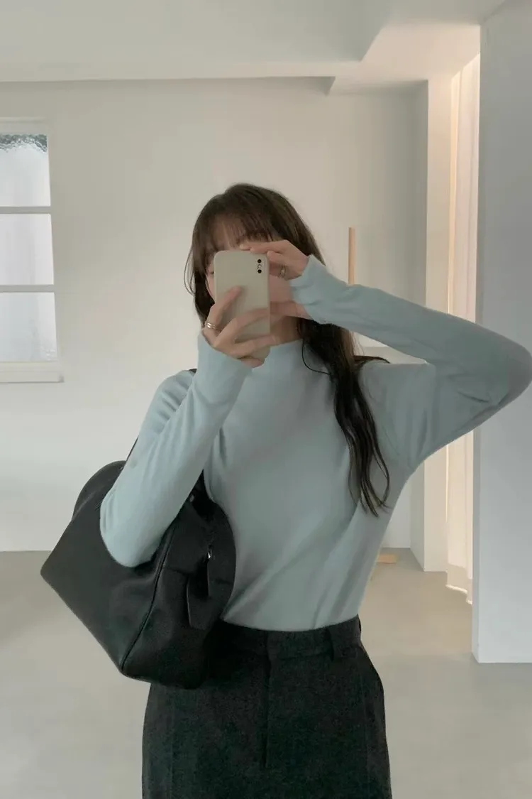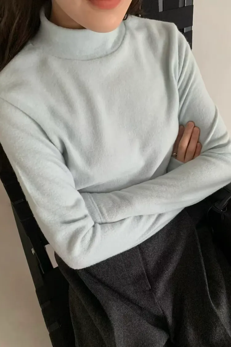 親膚溫暖~指套磨毛小高領打底Tee(二色)(安哥拉羊毛)