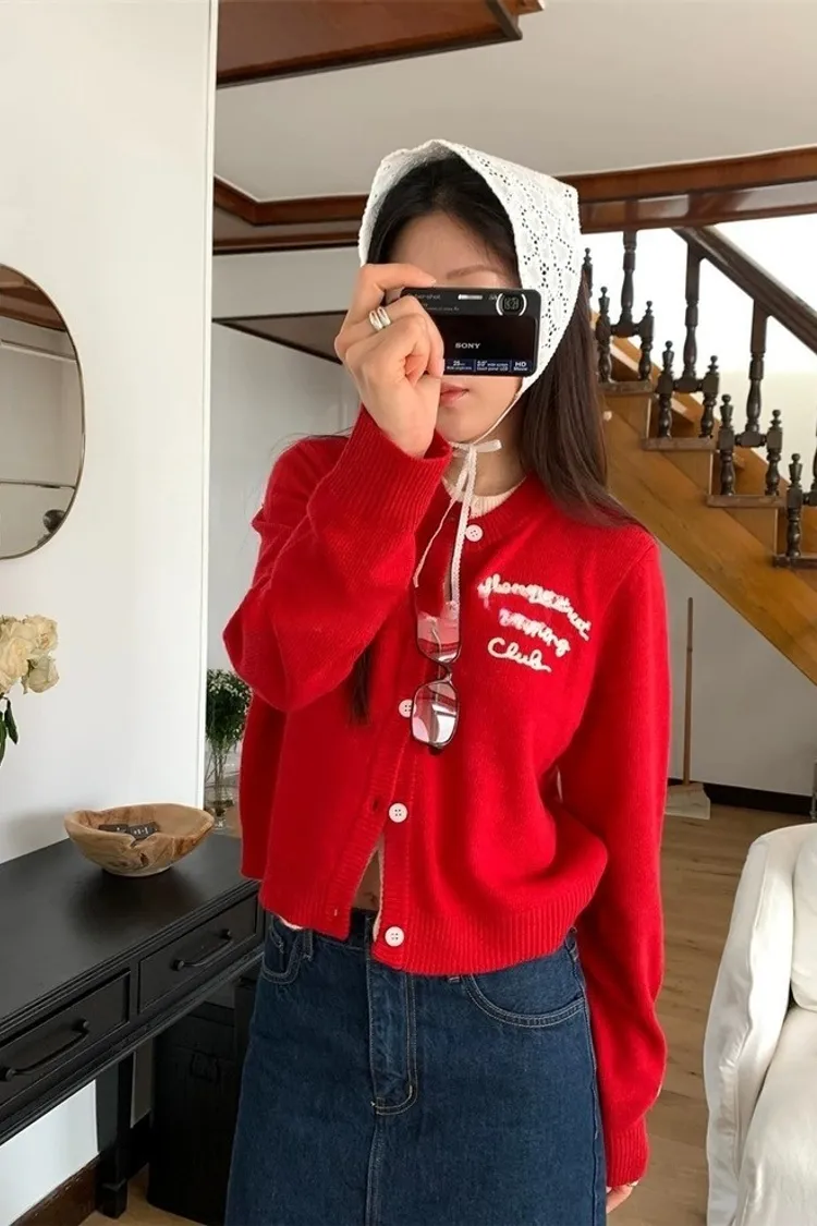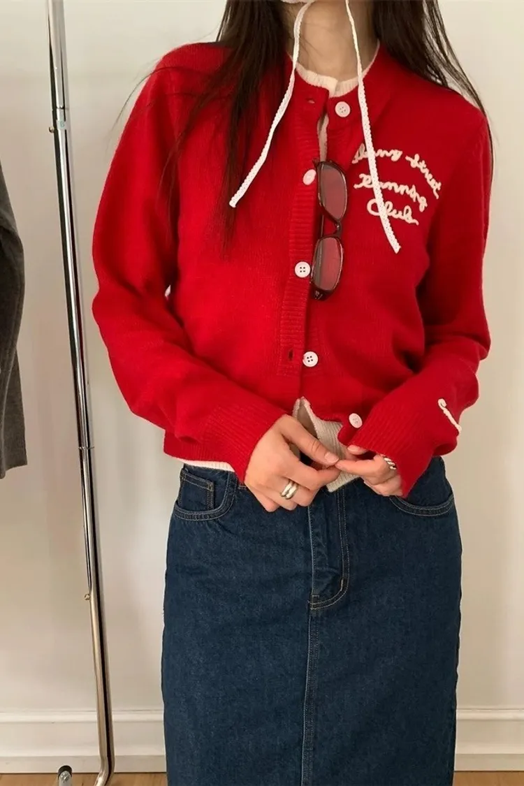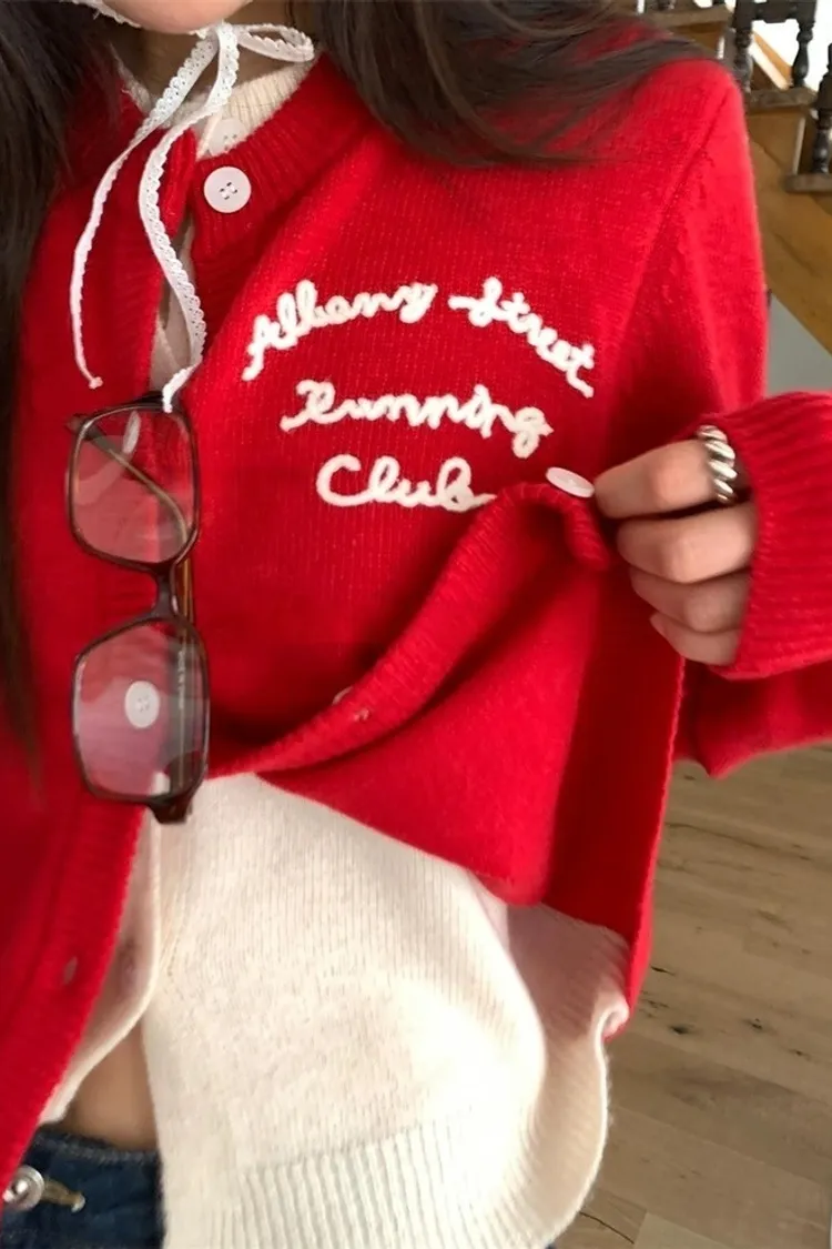 新春造型假兩件繡線字母針織上衣(一色)