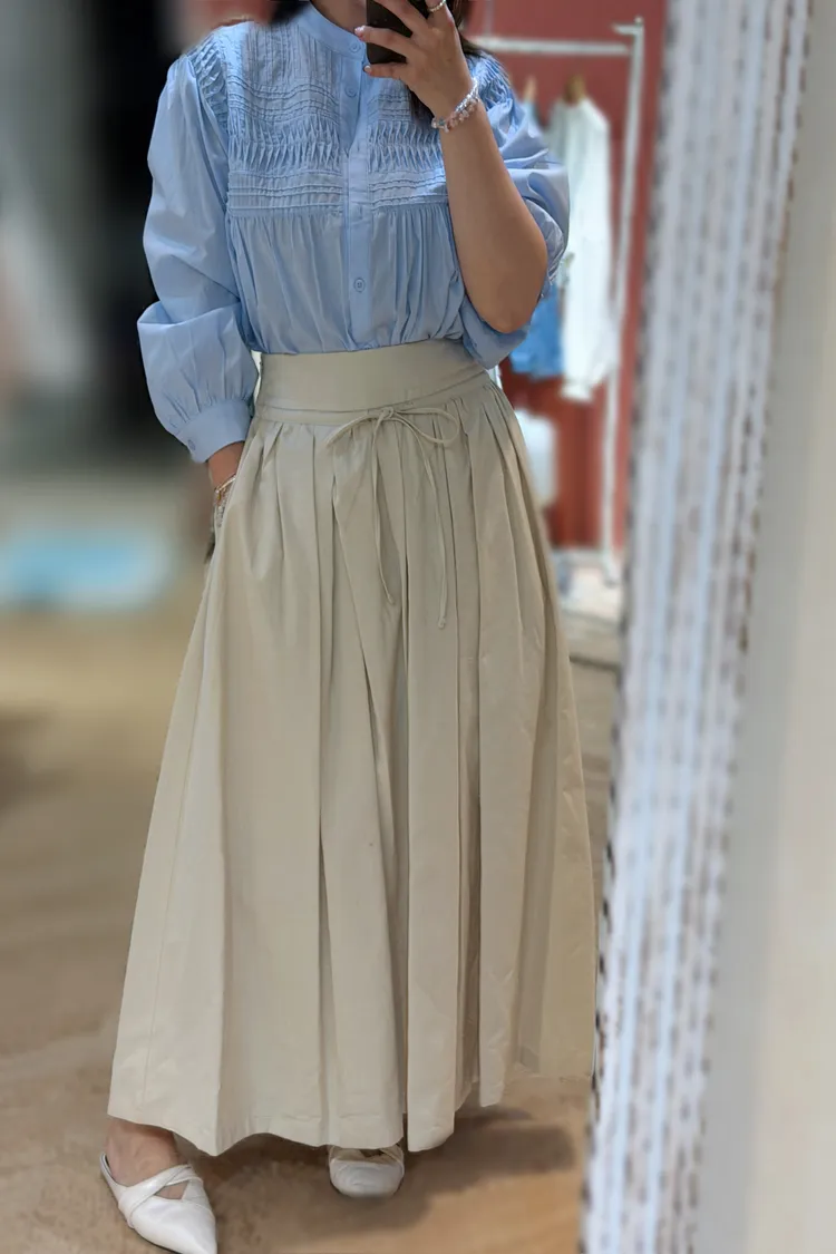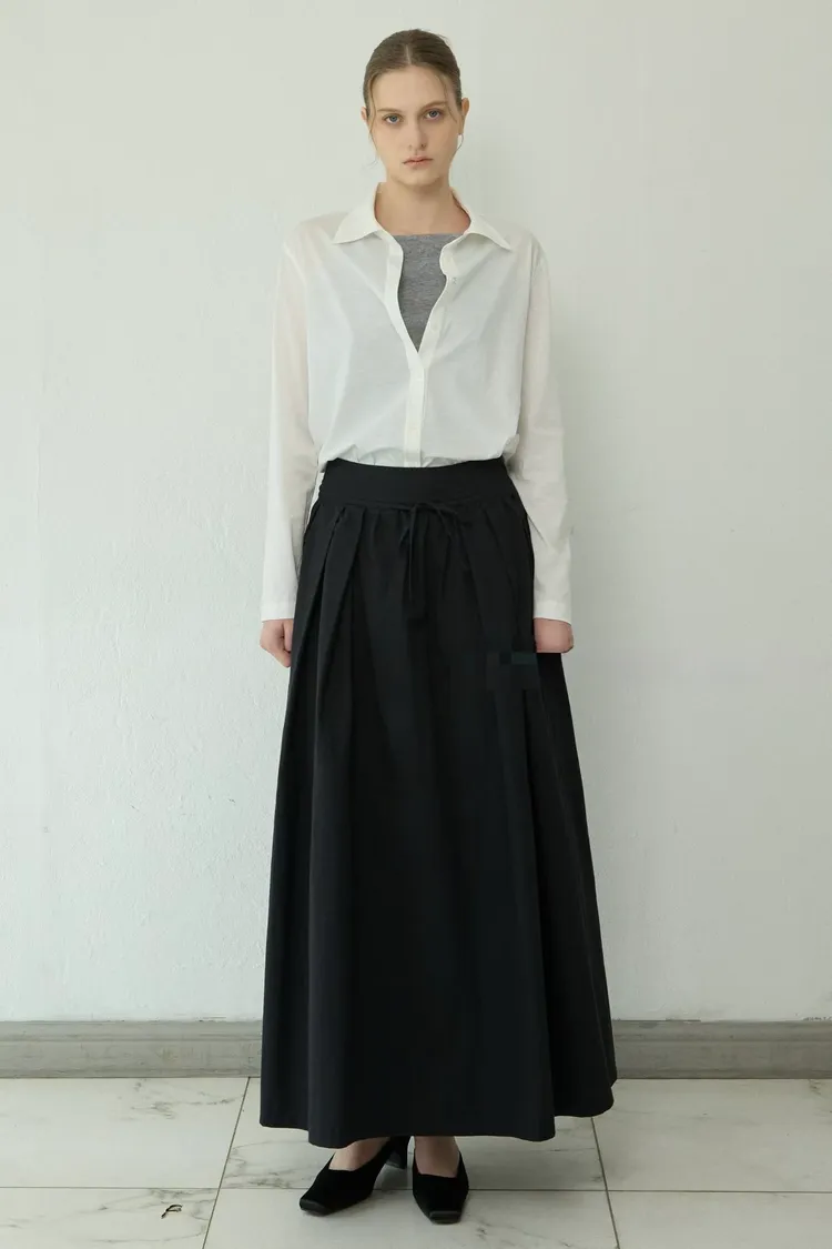 法式生活綁帶長圓裙(二色)