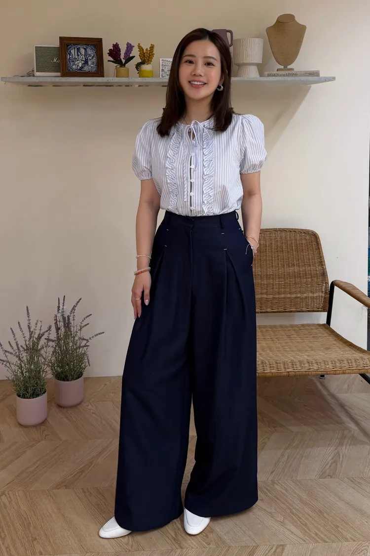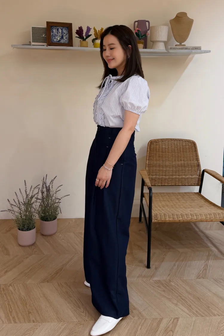聖日耳曼深藍剪裁設計縫線長腿寬褲(一色)